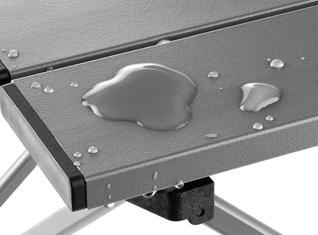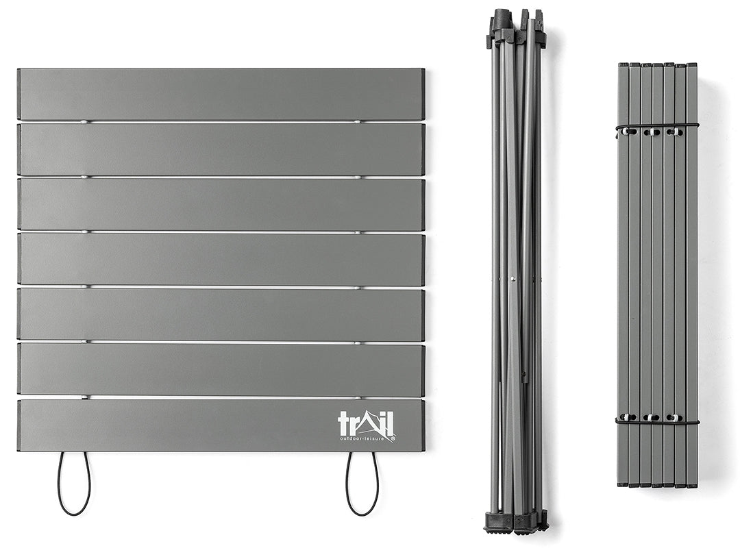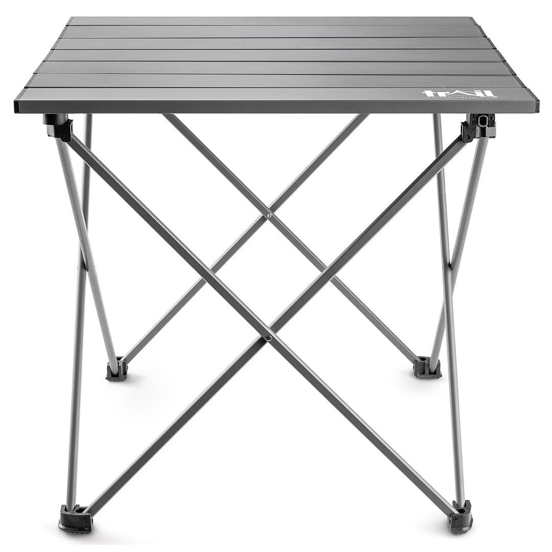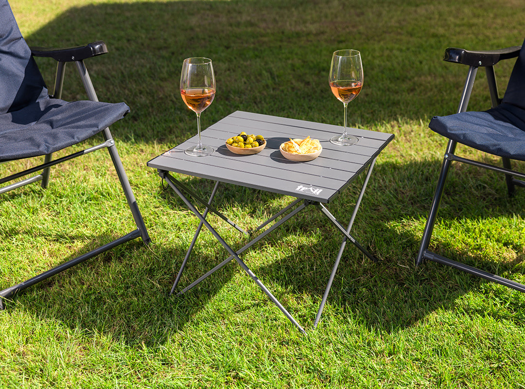 - Folding Camping Table made from strong, sturdy aluminium (ultra-lightweight for easy portability, plus naturally waterproof and immune to rust).