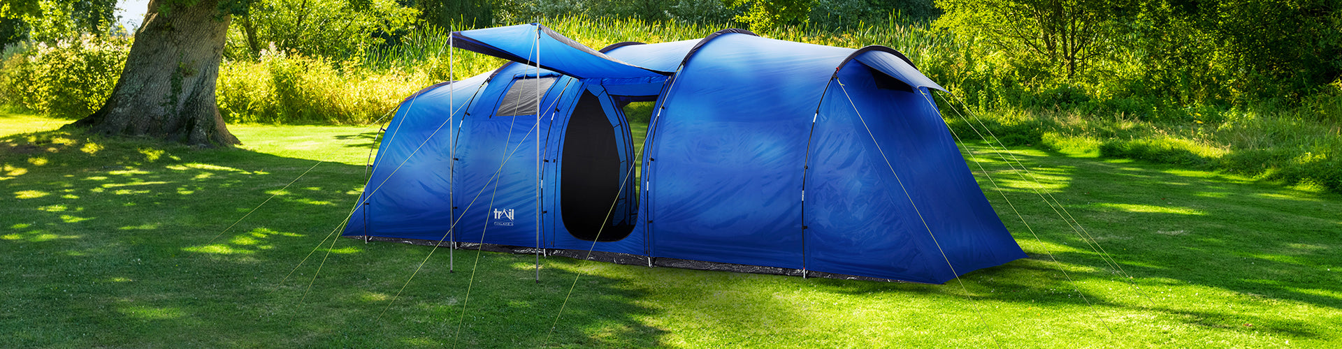 Tunnel Tents ![]() Searching for something bigger for a group or family outing? Look no further than a tunnel tent. Unlike dome tents, they have arched poles which form a spacious tunnel shape. As well as being tall enough to stand in, most have a living area which is big enough for a table and chairs. Plus, multiple bedrooms for extra privacy while sleeping. Because of their size, they're great for longer camping trips.