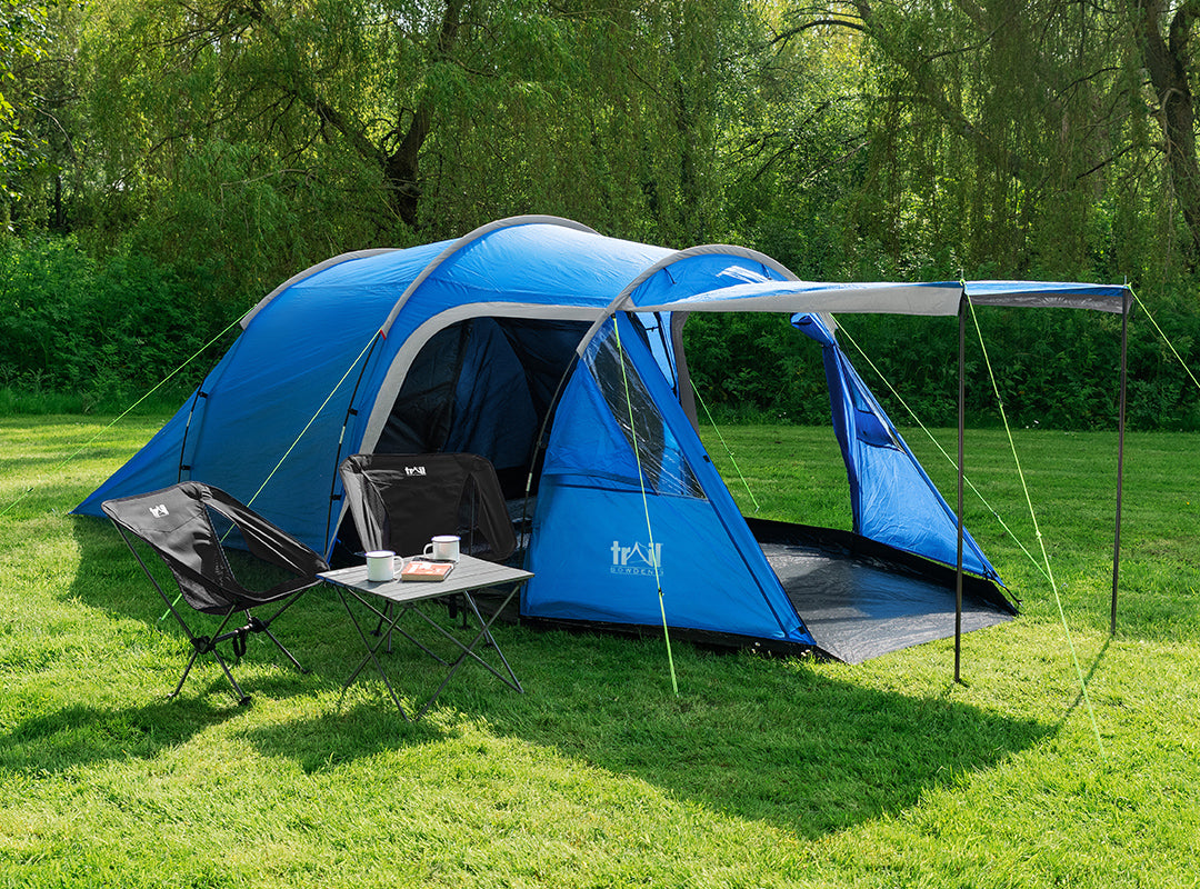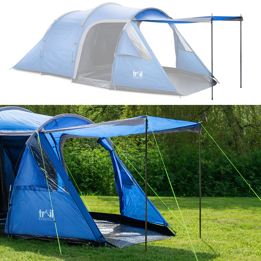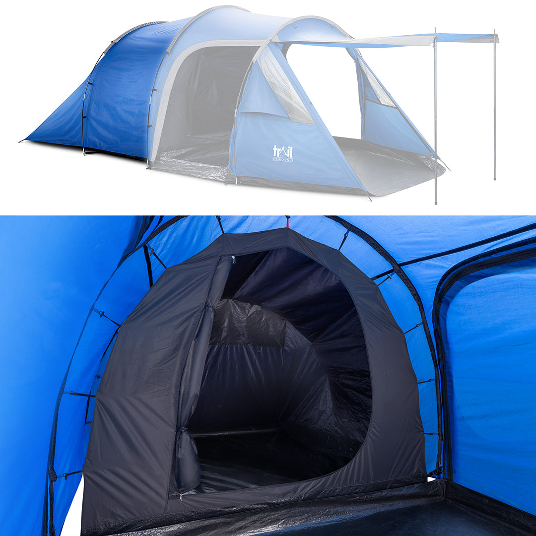 - Bedroom measures L210cm x W205cm x H125/145cm with zip entrance, sewn-in groundsheet to protect from damp and draughts, and mesh vent with curtain.
