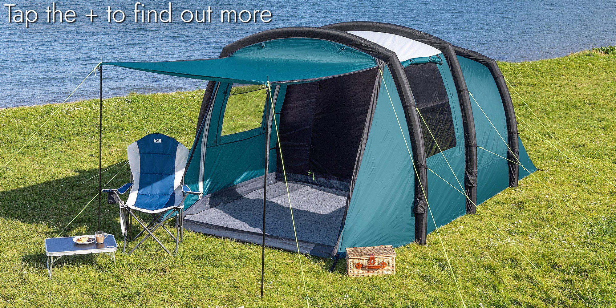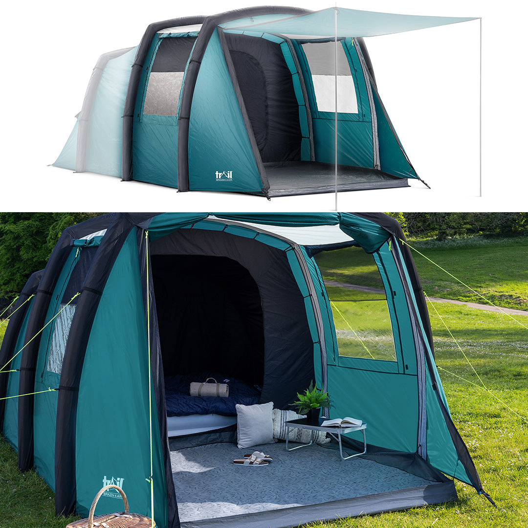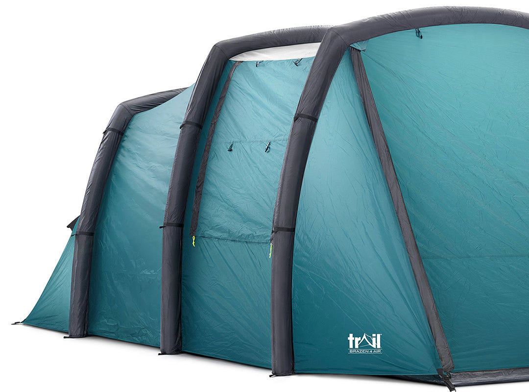 - Brazen 4 Man Inflatable Tent measures L455cm x W270cm x H195/165cm with spacious living area and bedroom (comfortably sleeps 3 people, but big enough for 4).