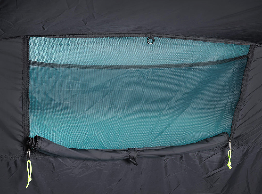 - Dark Zone bedroom significantly blocks out sunlight and contains a sewn-in groundsheet, pockets, and a mesh vent with curtain (measures L220cm x W240cm x H165cm).