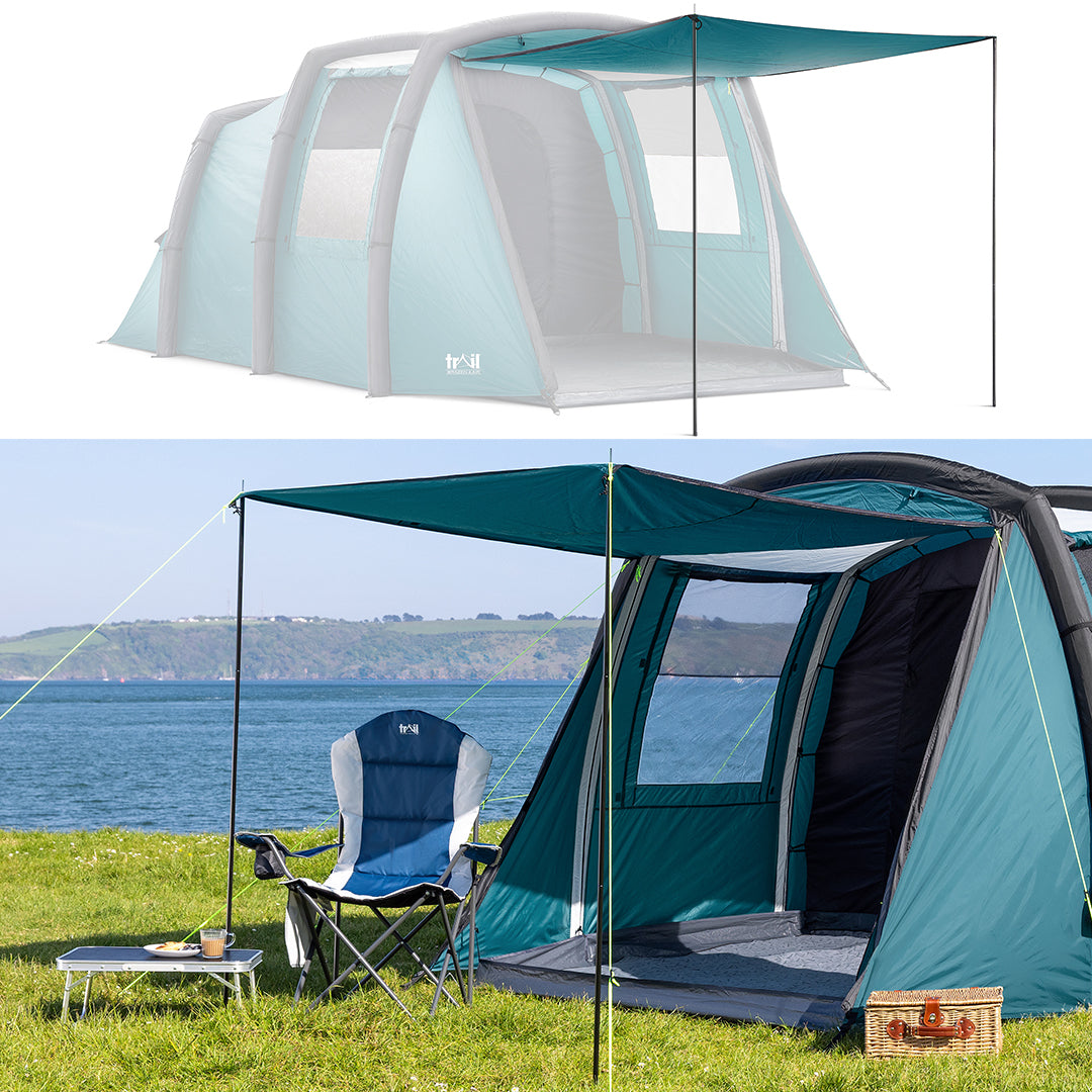 - Living area features a removable tub groundsheet, zip entrance, 2 windows, lantern hook, and 2 x king poles to create a sun canopy (measures L235cm x W270cm x H195cm).