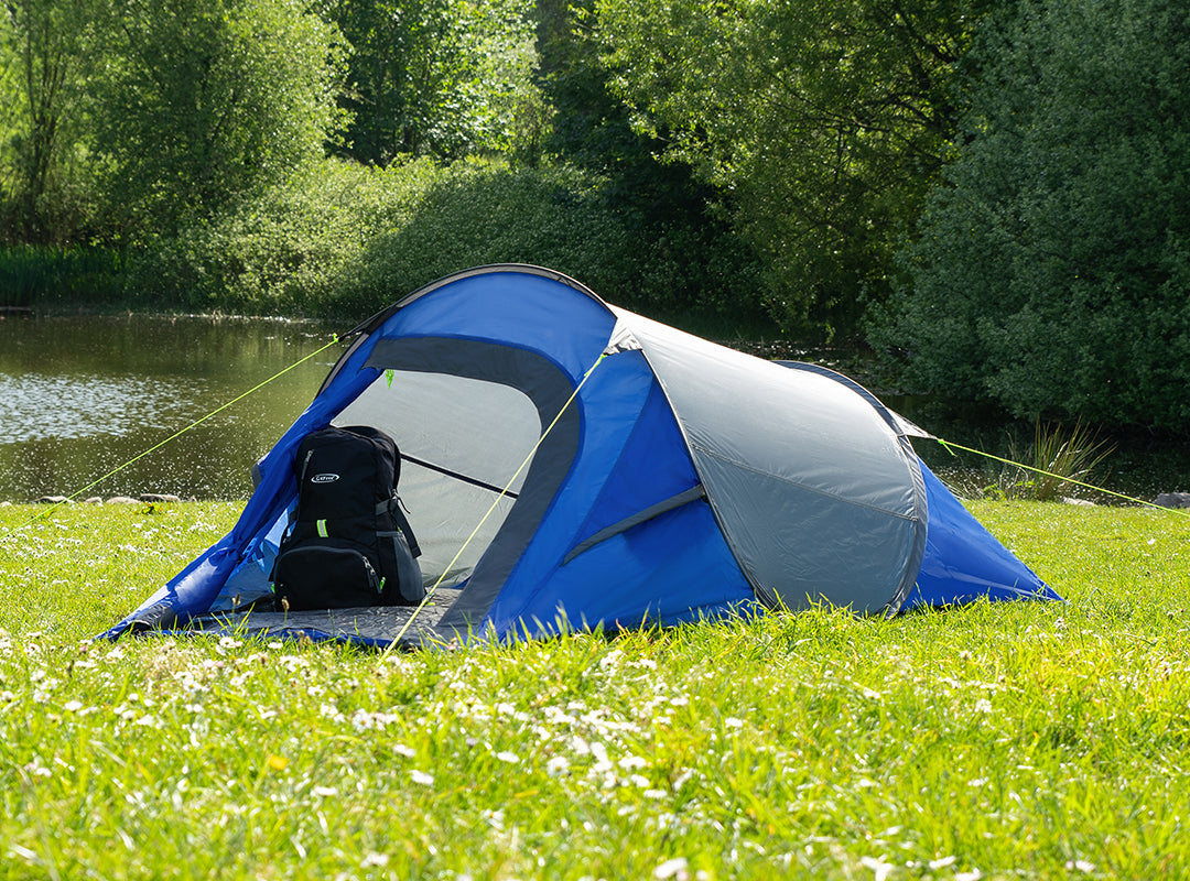 - Pop Up Tent measures L216cm x W118cm x H90cm when pitched (comfortably sleeps 1 person, but can sleep 2 people at a squeeze).