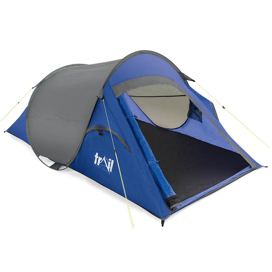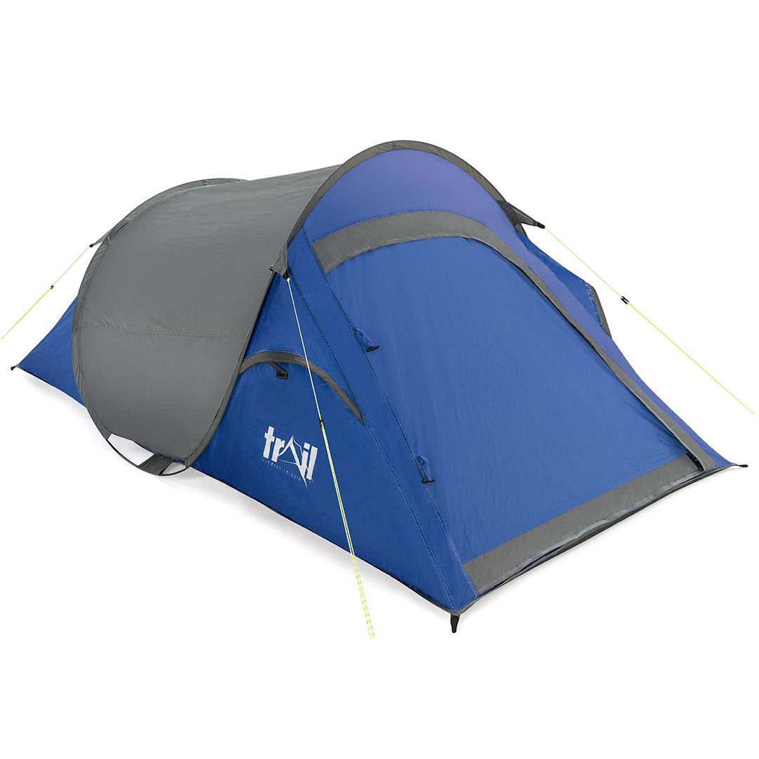 - Pops up and pegs down in less than a minute (peg the tent down using the steel pegs included, then peg down its pre-fitted guy lines).