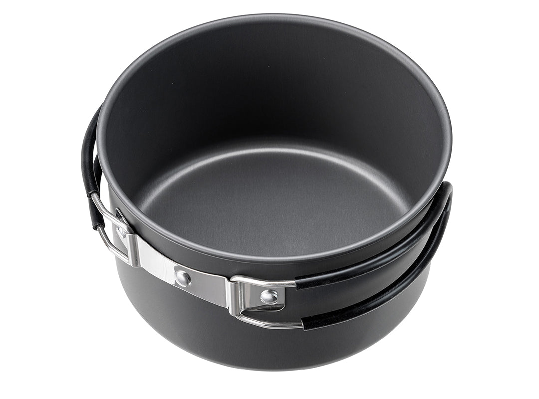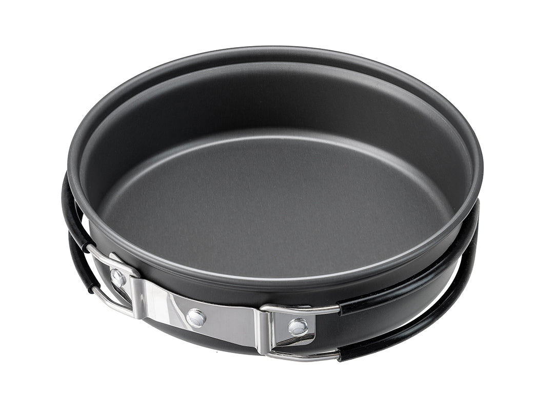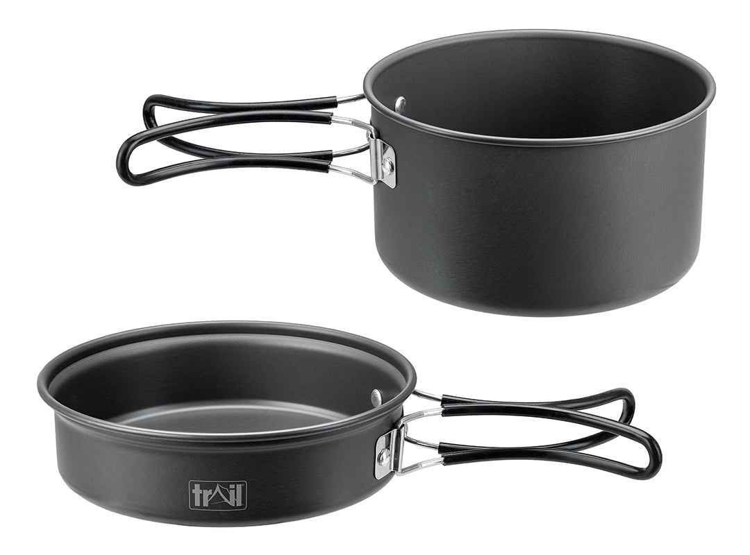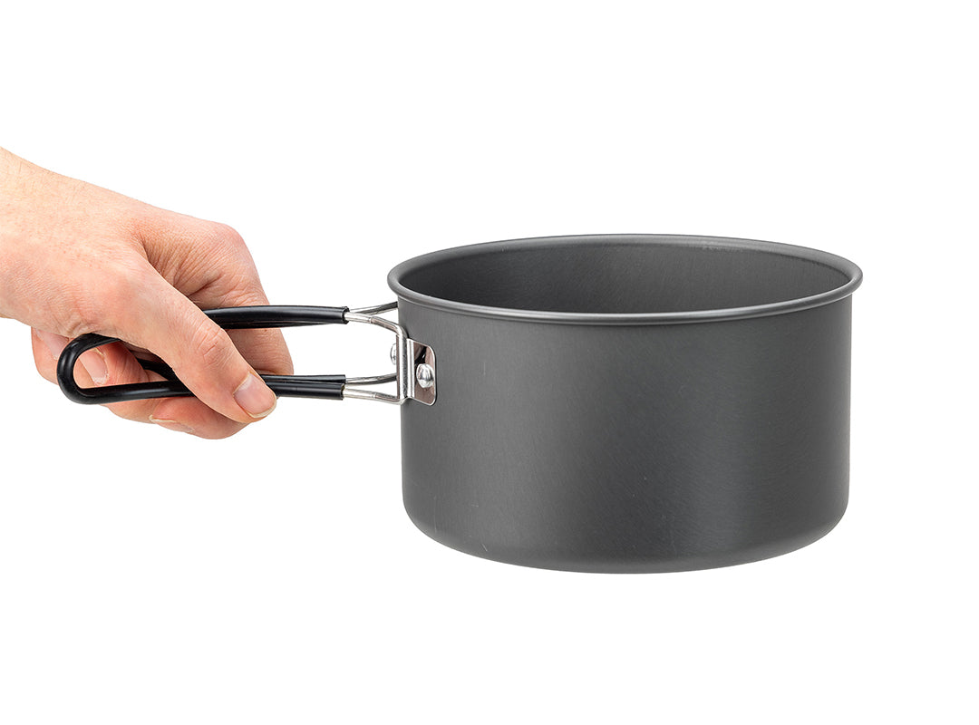 - Includes a 1000ml cooking pot (14.5cm x 8cm) and frying pan (15.5cm x 4.2cm) to cook. Designed with folding silicone-coated handles to safely handle when hot.
