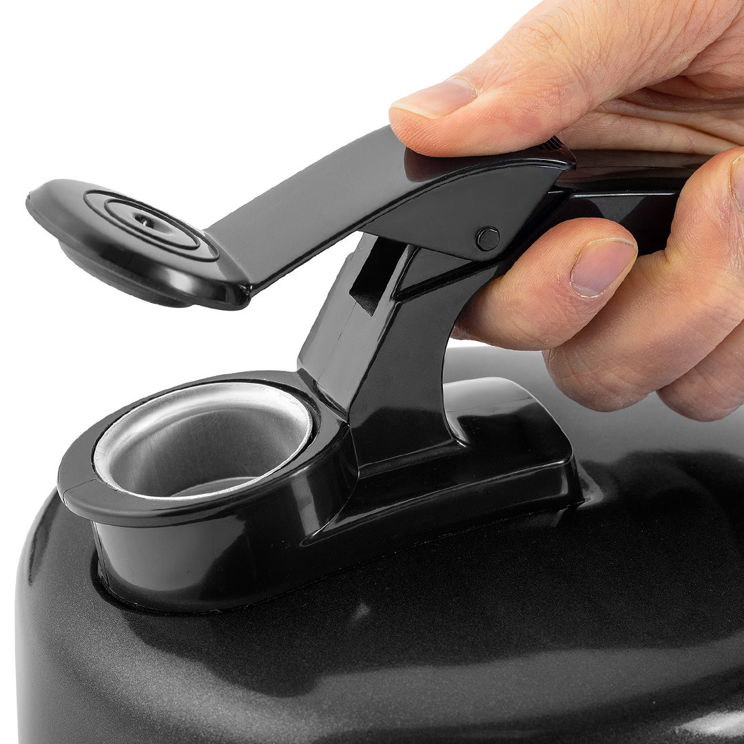 - Spout makes a loud whistling sound to let you know when the kettle's boiled. Designed with a push mechanism to easily open when filling up or pouring the kettle.