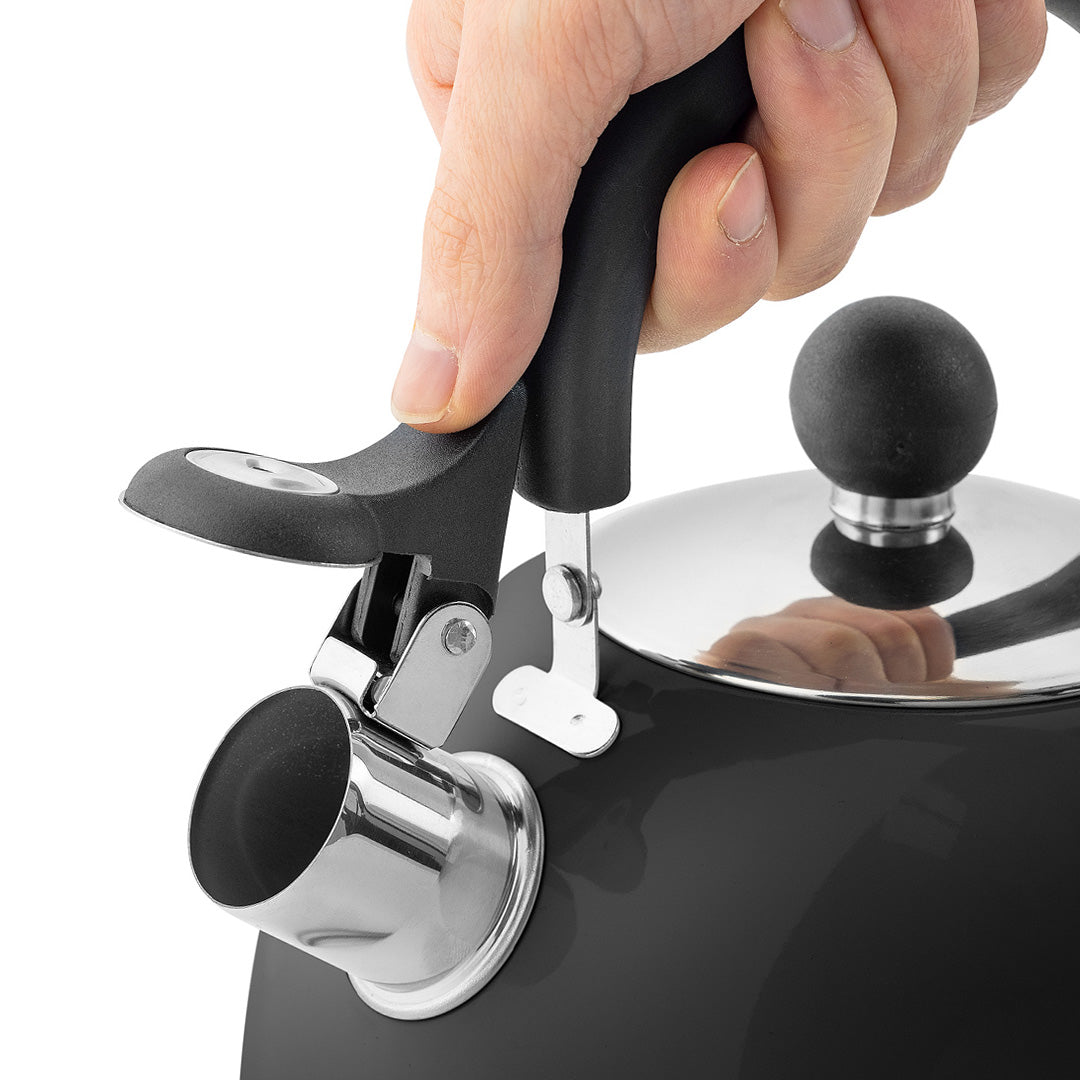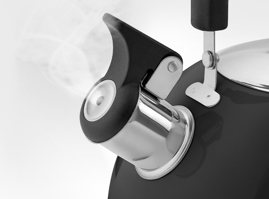 - Spout makes a whistling sound to let you know when the kettle's boiled. Shaped for easy pouring with a flip and pour cover to protect from steam burns.