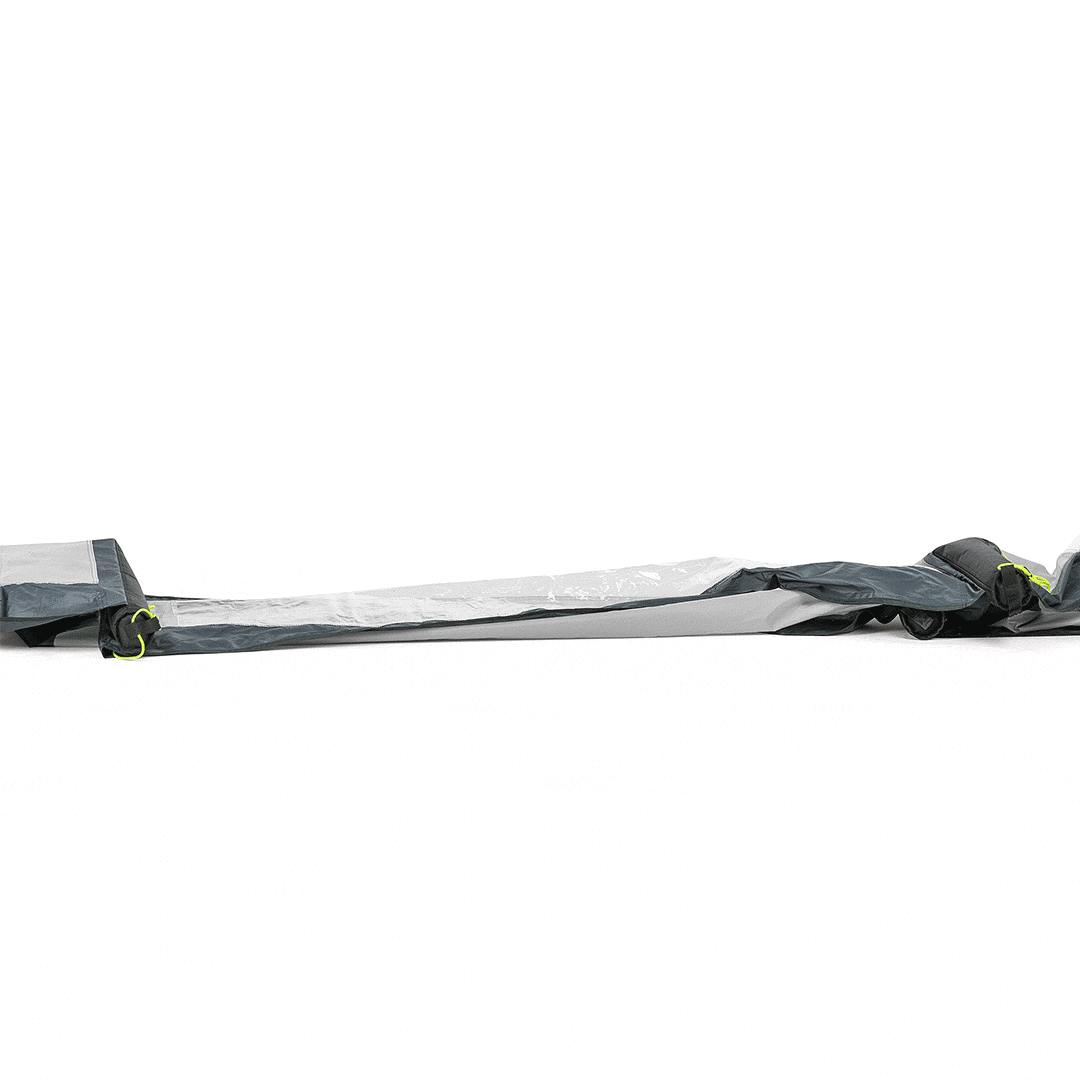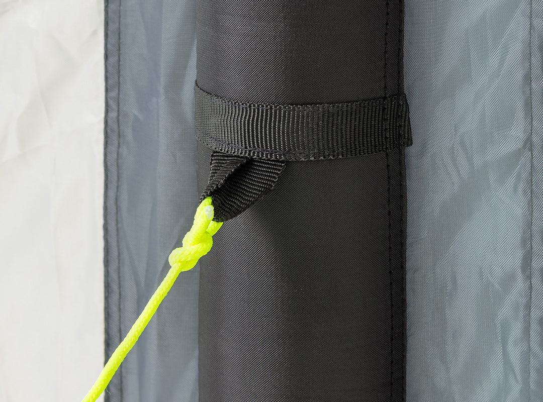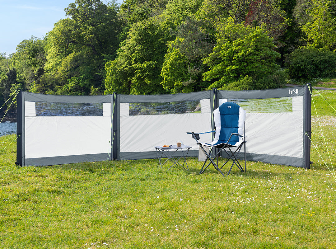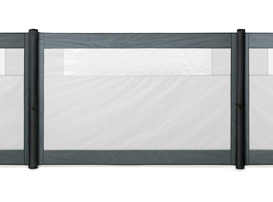 - End poles fitted with 6mm Kador strips and connection hooks to easily attach to motorhome and campervan awnings. Also attachable to additional Trail Windbreak Extension Panels.