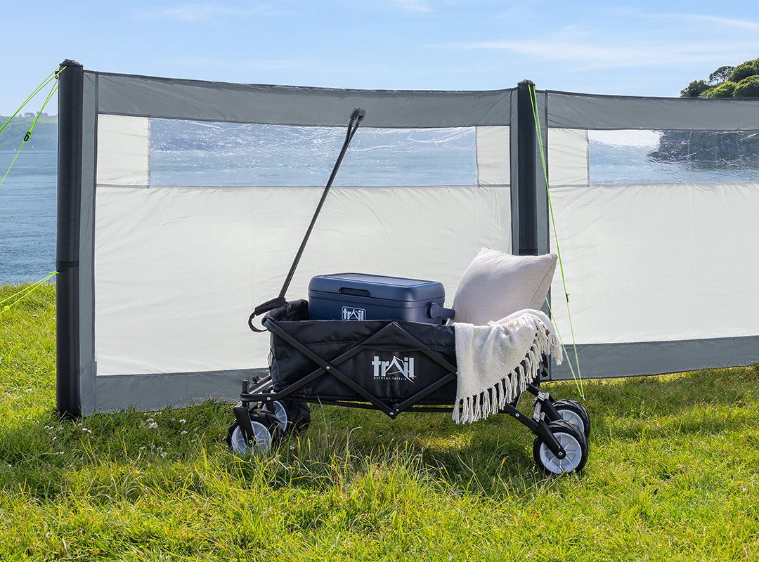 - Available as 4 Panel Air Windbreak (3 Panel + 1 Panel Extension) measuring L795cm x H130cm, or a 5 Panel Air Windbreak (3 Panel + 2 Panel Extension) measuring L975cm x H130cm.