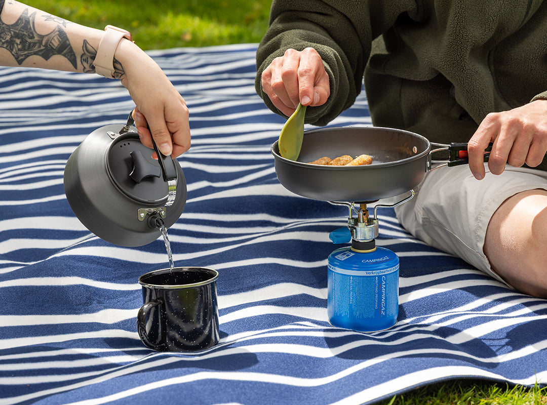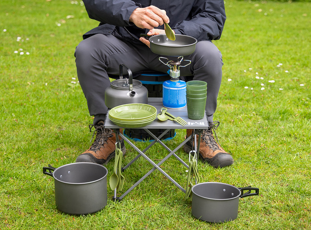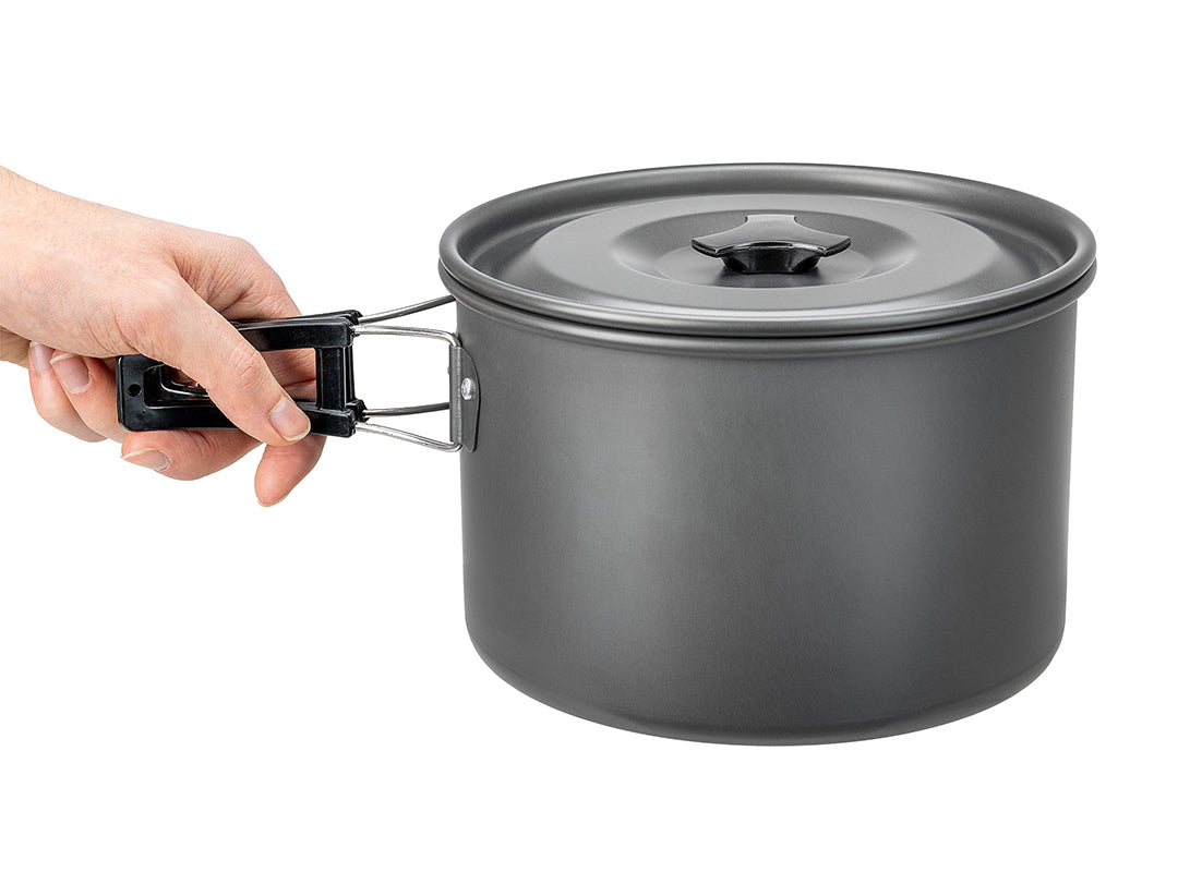 - Includes a small cooking pot with lid (1700ml), large cooking pot with lid (2900ml), and frying pan (18cm x 4.3cm) to cook. Plus, a 1000ml kettle to boil water.