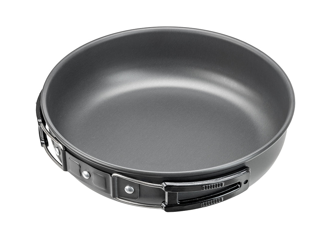 - Made from aluminium with a hard anodised coating and folding Bakelite handle for a safe, easy grip. Excellent at conducting heat and non-stick for fast, easy cooking.