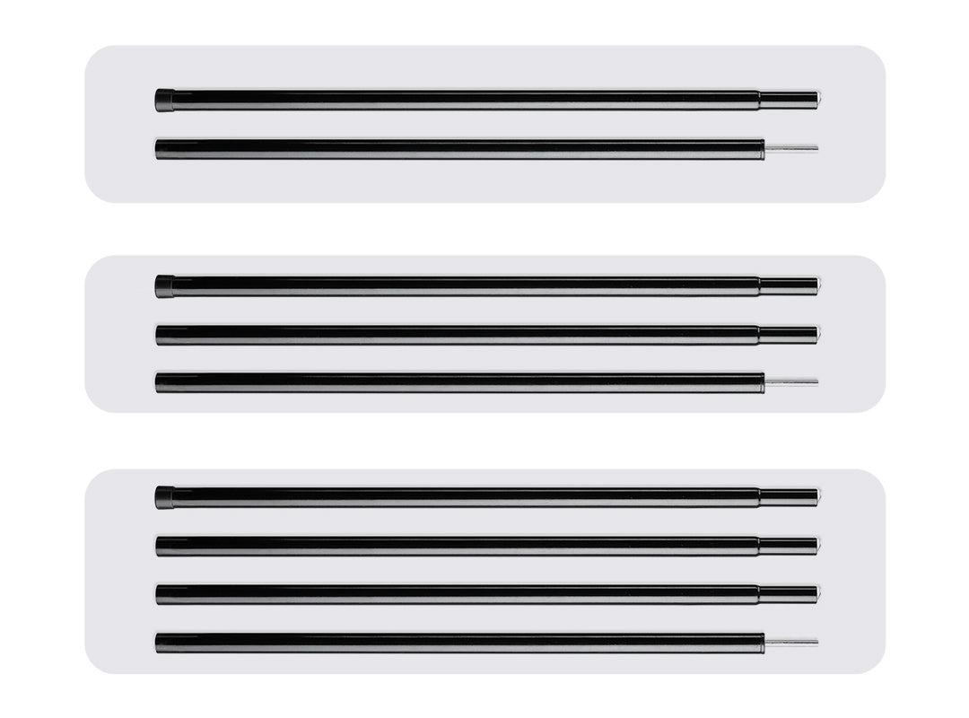 - Each section has a spring-clip to easily thread and lock together. Set up with 2, 3, or 4 poles to easily adjust the height of the king poles to 91cm, 136cm, 180cm.
