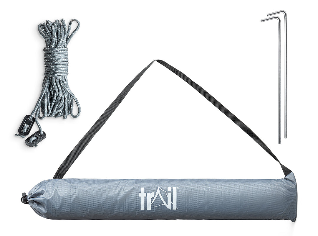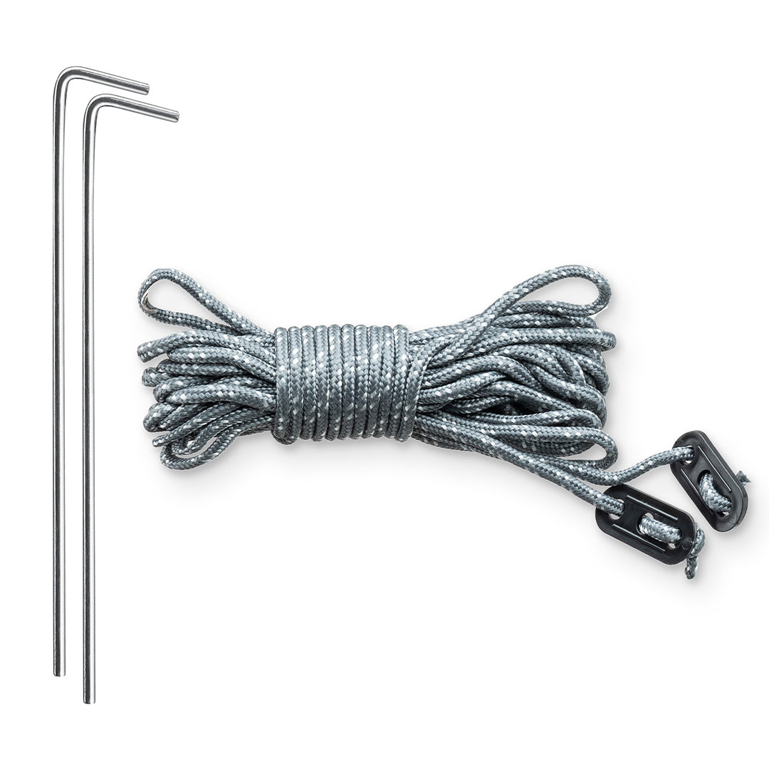 - Supplied with 2 x guy-lines and 2 x steel pegs for torsional strength and stability when pitched. Plus, a drawstring bag to easily store and carry (set weighs 1kg).