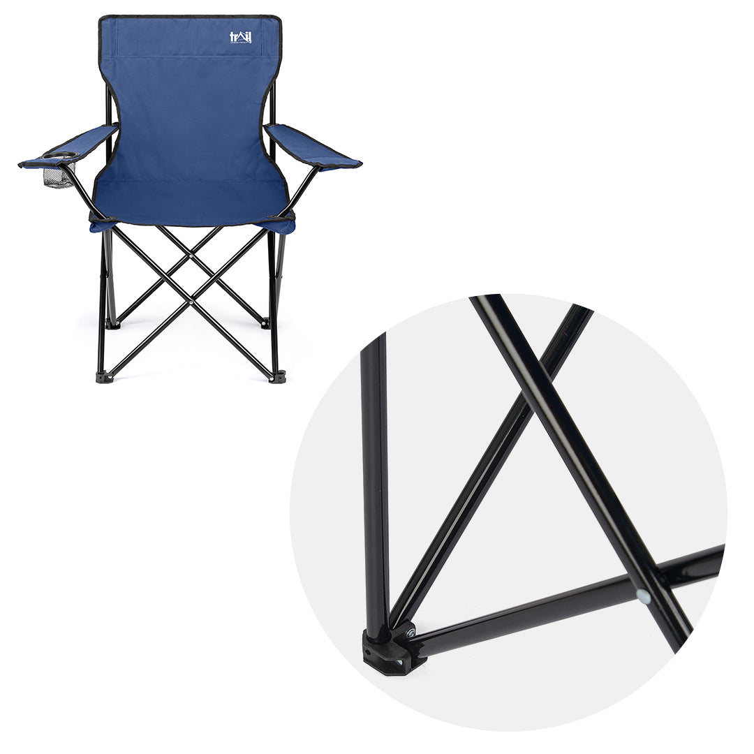 - Folding camping chair measures H85cm x W80cm x D50cm with a seat height of 40cm and maximum weight capacity of 100kg.