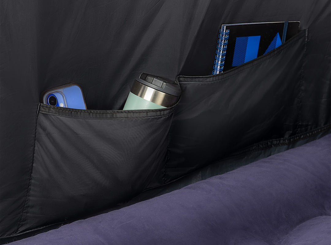 - Bedroom pod designed to fit Trail awnings only. Measures 135cm x 200cm with a height of 180cm. Large enough to fit a double airbed and tall enough to stand in.