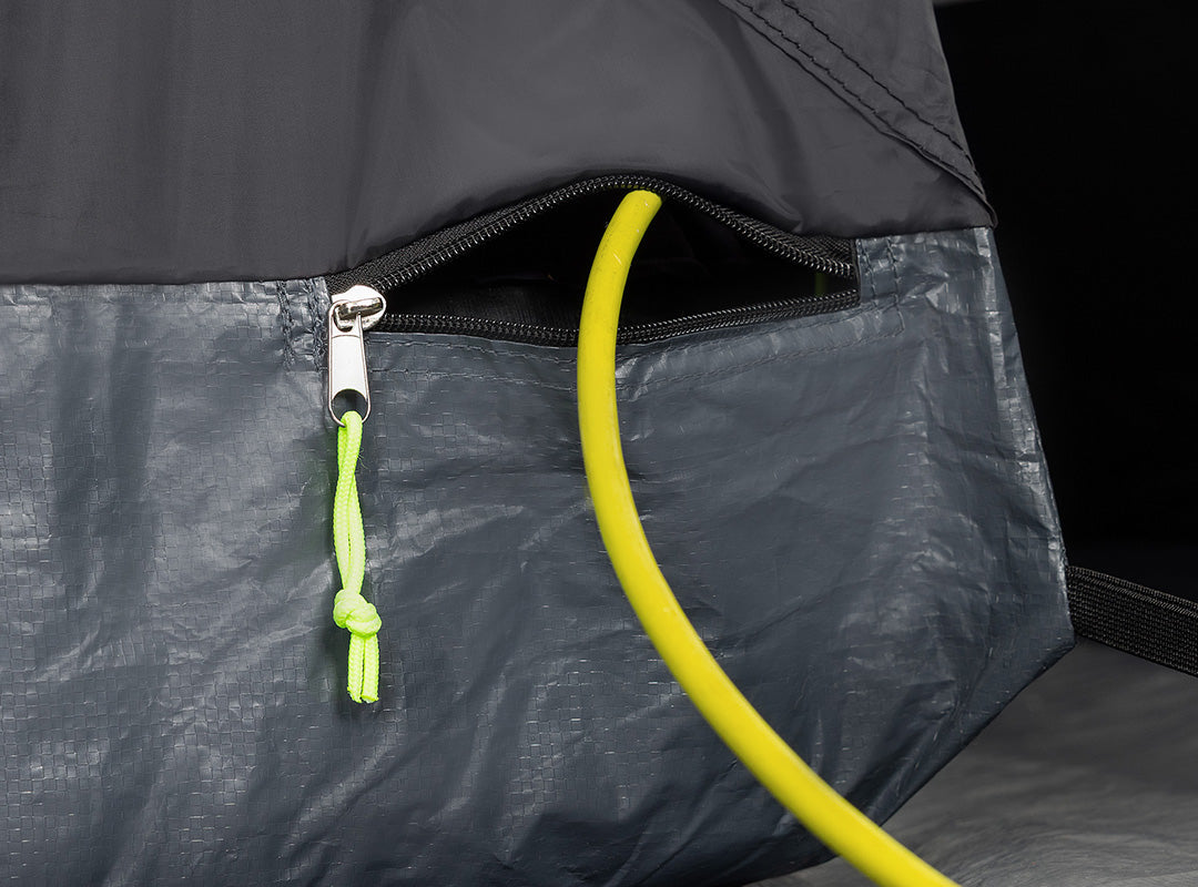 - Rear mesh panel with zipped cover for extra light and ventilation. Plus, a zipped cable entry point to hook up electricals and two pockets to store valuables and essentials.