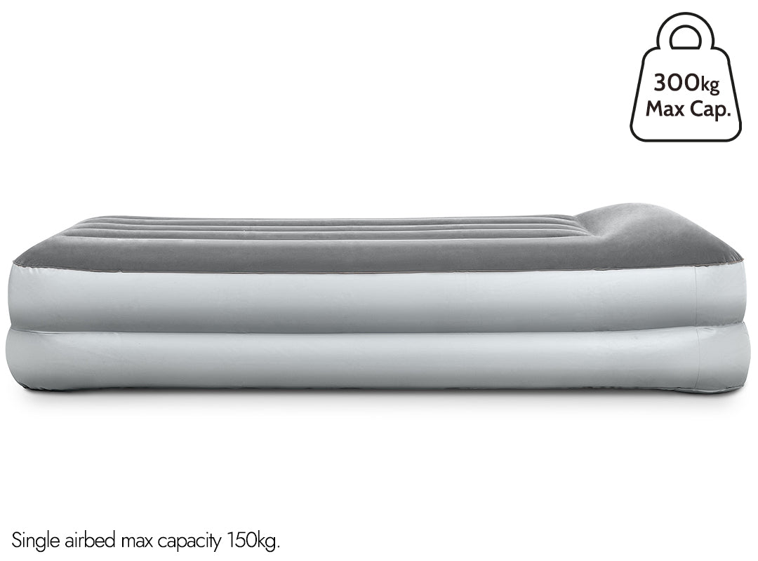 - Choose from a single airbed (L191cm x W97cm x H46cm with 150kg weight capacity) or double airbed (L203cm x W152cm x H46cm with 300kg weight capacity).