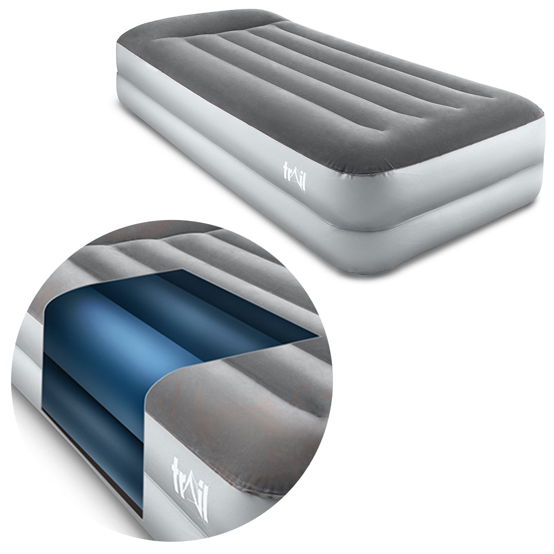 - Extra-wide with an elevated height and raised pillow to mimic the luxury feel of a real mattress (single is 21cm wider, and double is 15cm wider than a normal airbed).