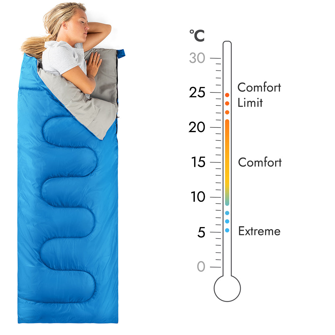 - 200gsm hollowfibre filling for 2 season camping (optimal comfort at 10˚C to 20˚C, making it a great choice for warm nights, summer, and indoor use).