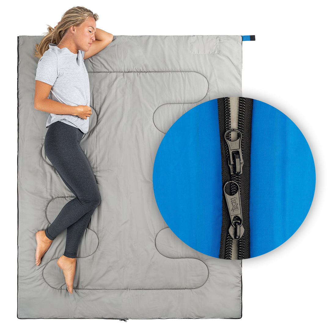 - Extra-tough 2-way zip to easily open, regulate the temperature, or use as a duvet (can also be zipped to another envelope sleeping bag to make a double).
