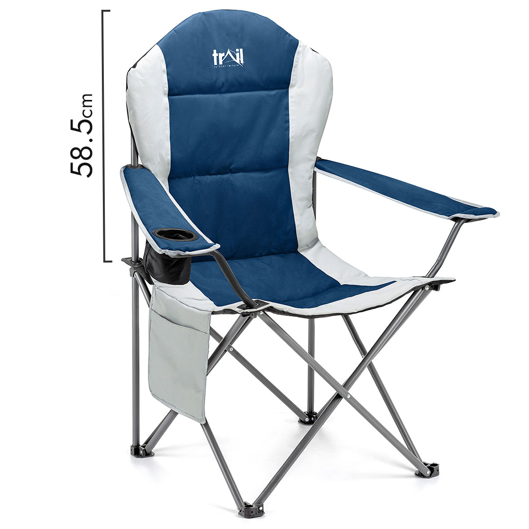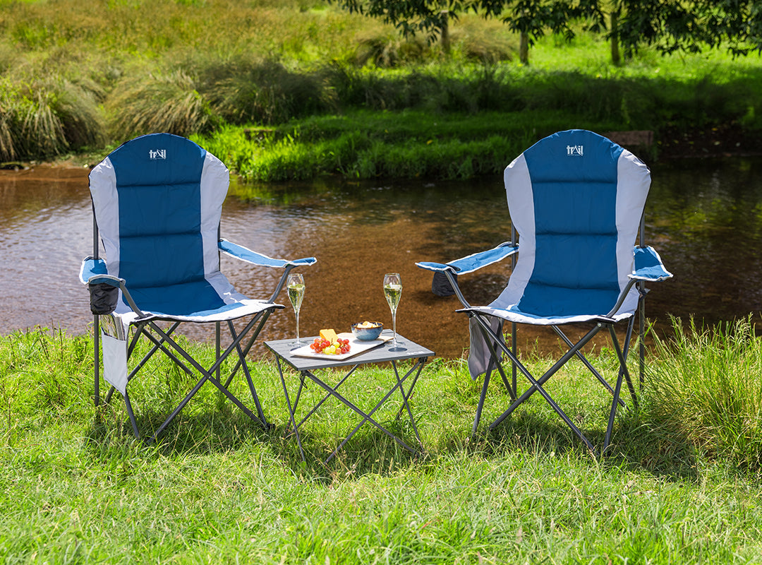 - Set of 2 Padded Camping Chairs (each chair measures H104cm x W88cm x D58cm with a seat height of 49.5cm and weight capacity of 120kg).