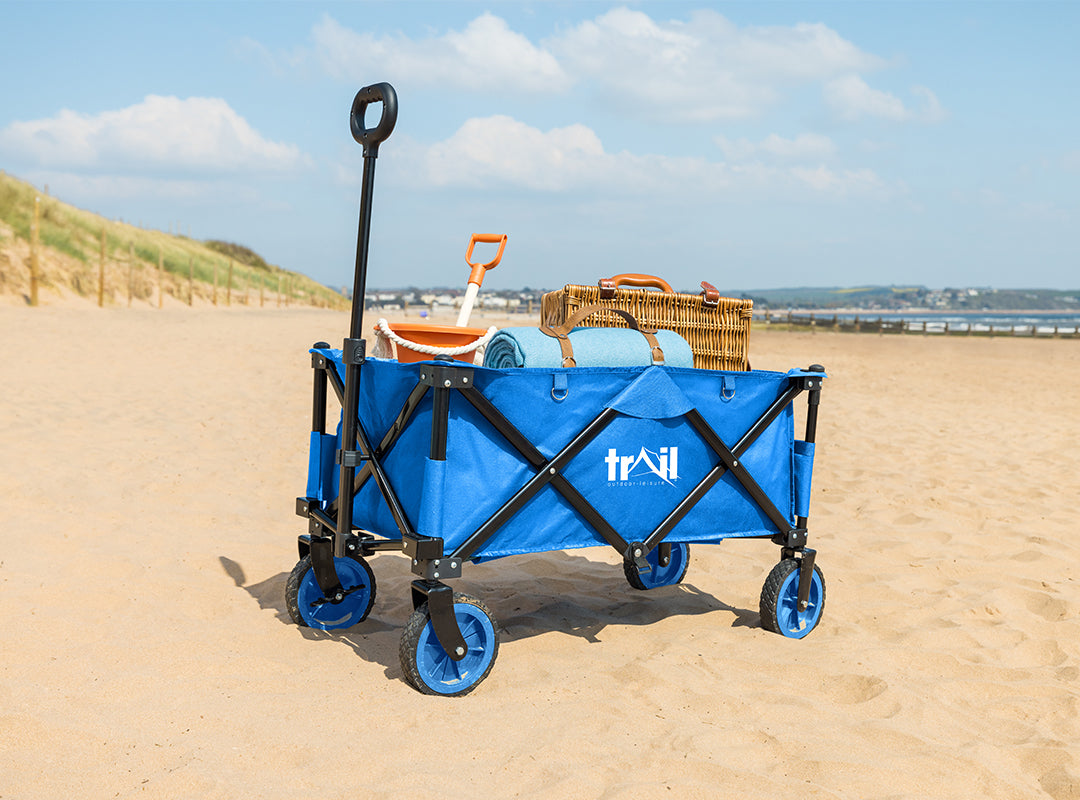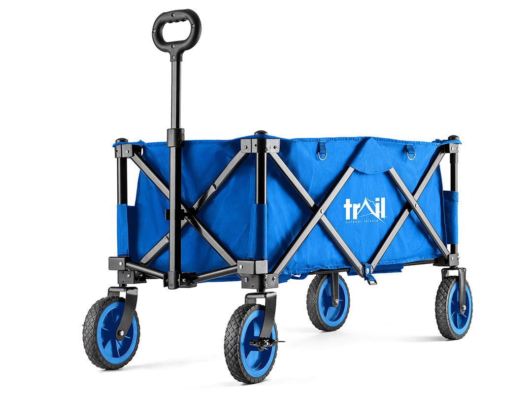 - Folding Camping Trolley measures L100cm x W50cm x H55cm and has a max weight capacity of 80kg (perfect for carrying camping and festival gear).