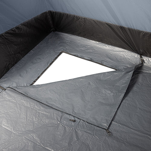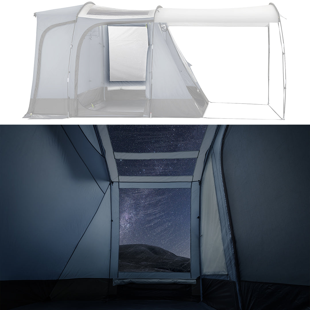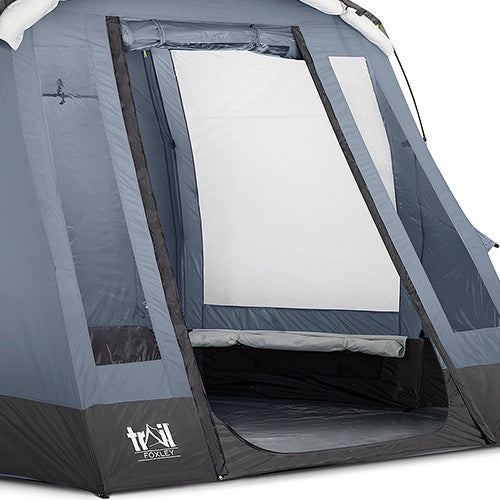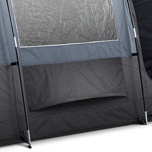 - Zipped front and side doors with secondary mesh doors. Front and side windows with toggle curtains. 3 x PVC skylights with blinds for optimal light and visibility. Perfect for star gazing!