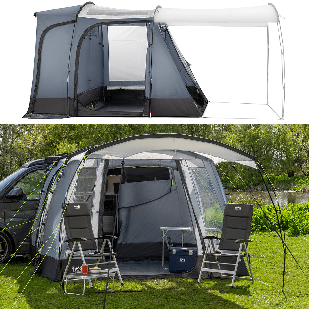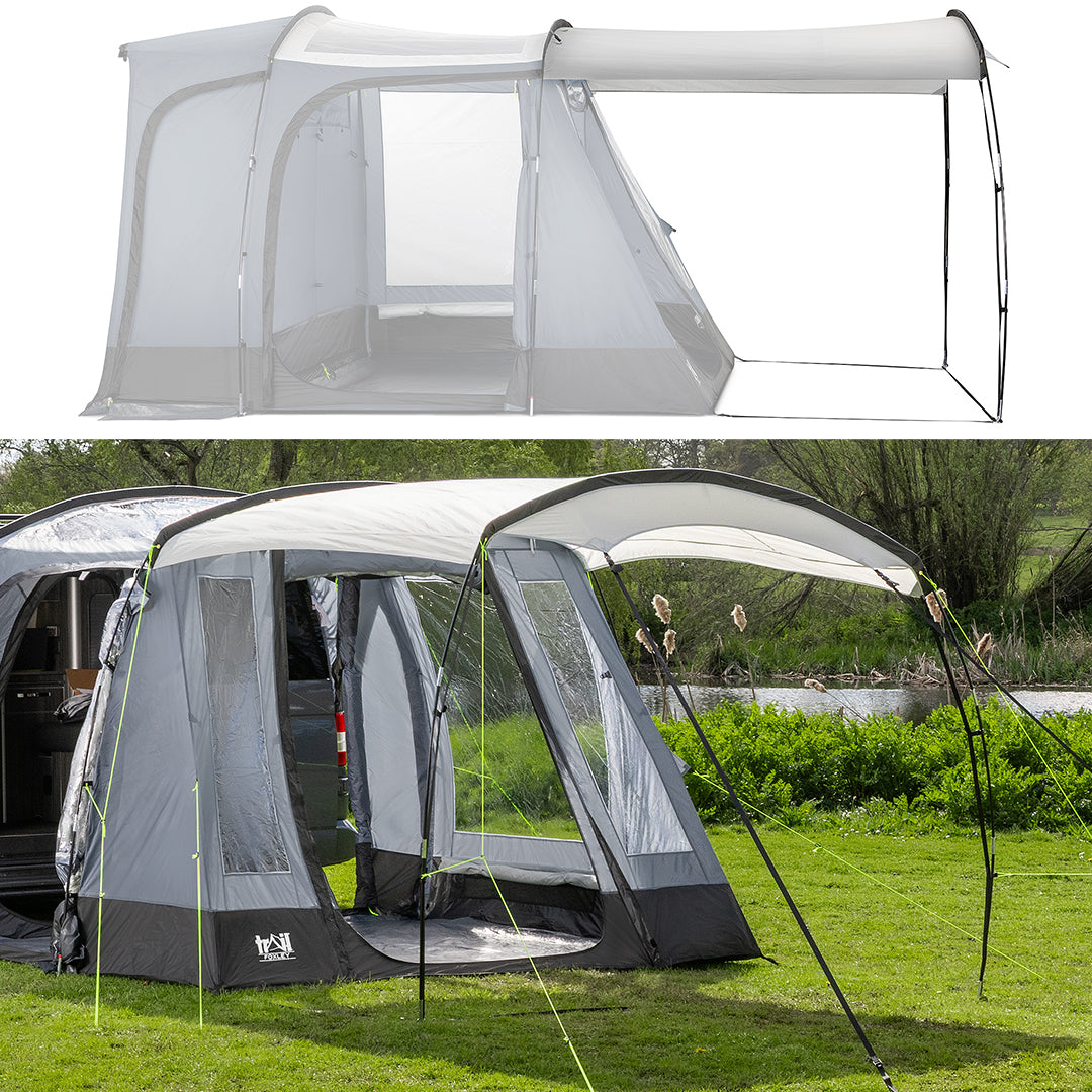 - Cowling has a zipped door to travel between awning and vehicle. Plus, two zipped side doors to easily access the front or rear of your vehicle without having to go through the awning.