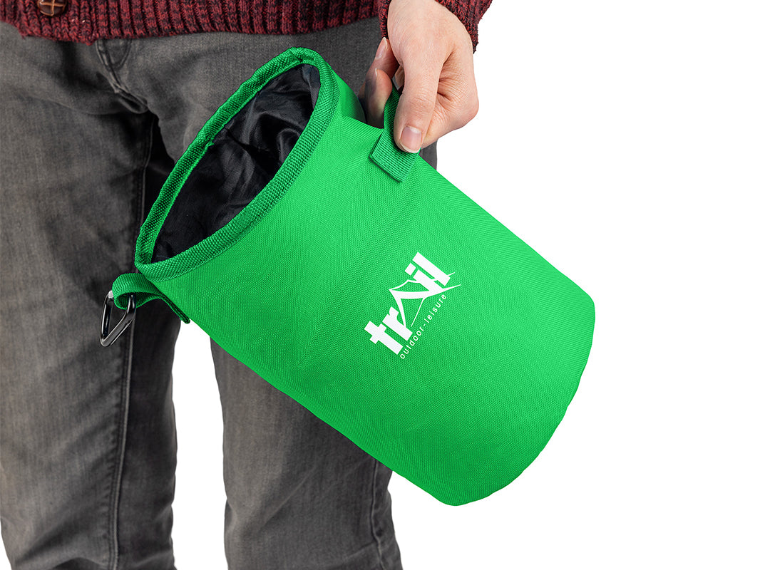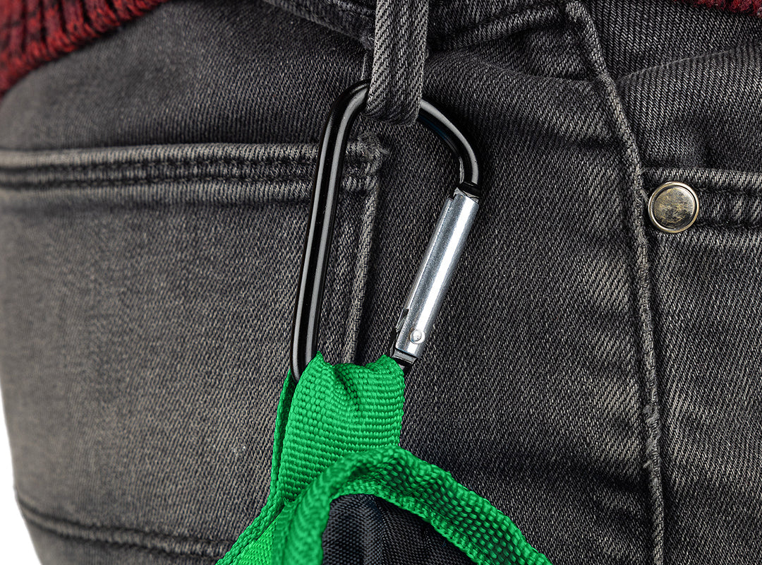 - Bag is brightly coloured to easily find in low light conditions and contains a carabiner clip to easily clip onto a belt or clothing.