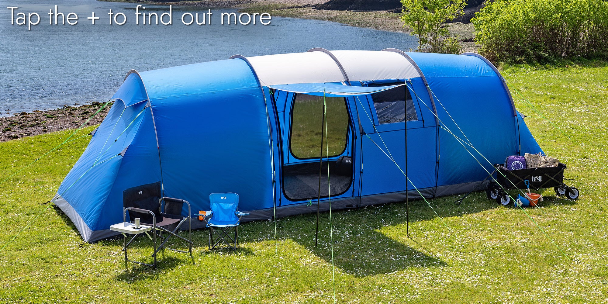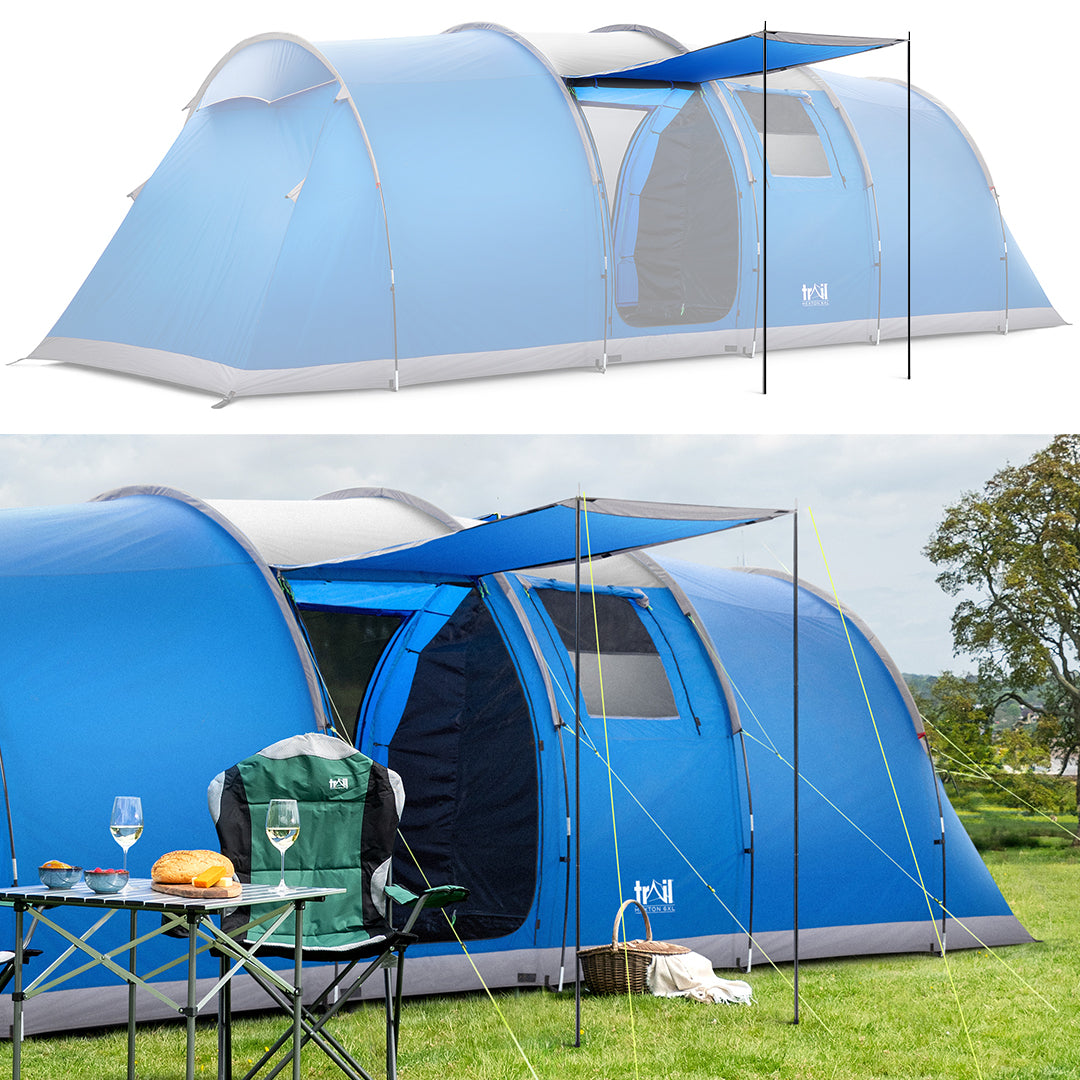 - King poles to create a sun canopy, plus an oversized bag to easily pack, store, and carry (measures 70cm x 32cm x 32cm and weighs 19.2kg when tent stored inside it).