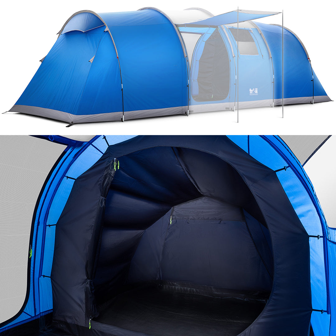 - Bedrooms designed using Dark Zone fabric to significantly block out sunlight (each bedroom has a sewn-in groundsheet, storage pocket, and mesh vent with zipped curtain).