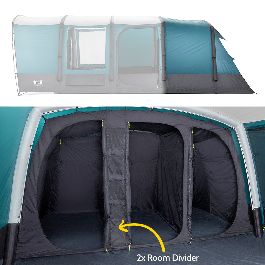 - Dark Zone bedroom significantly blocks out light and features a vent with curtain, 3 doors, and dividers to create 3 rooms (measures L210cm x W360cm x H175/195cm).
