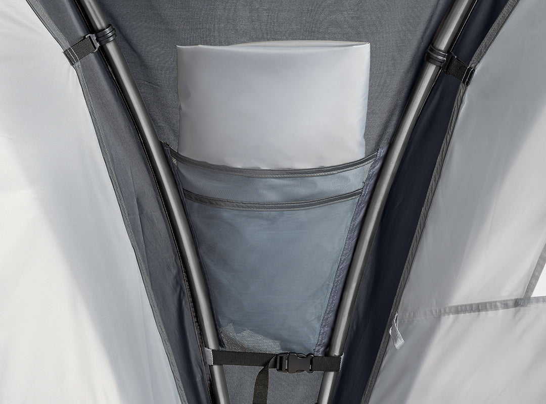 - Pockets to easily store the walls when unclipped and removed. Plus, pre-fitted guy-lines and extra pegging points for ultimate torsional stability (steel pegs included).