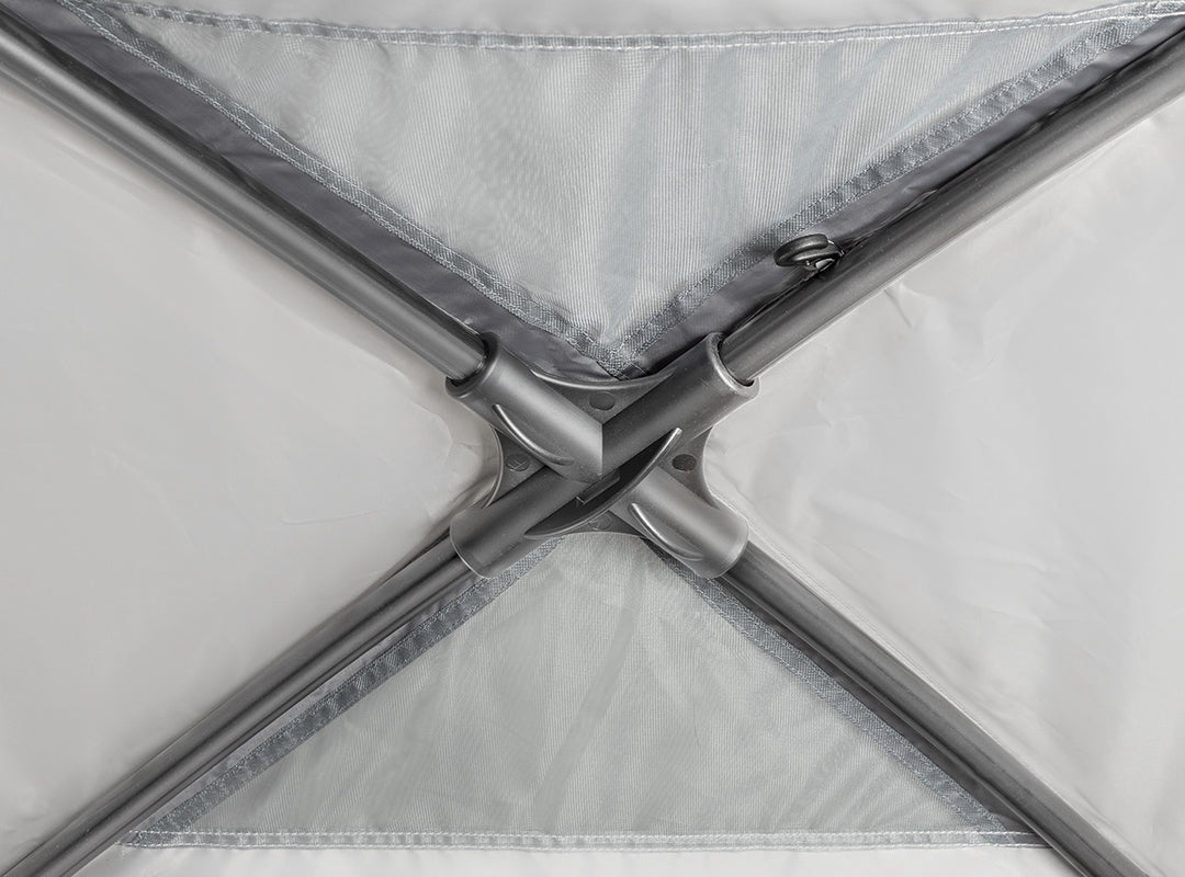 - Heavy-duty steel frame (19mm dia. poles). Stronger and heavier than fibreglass for superior stability. Easy to assemble with feet connectors and connection points.
