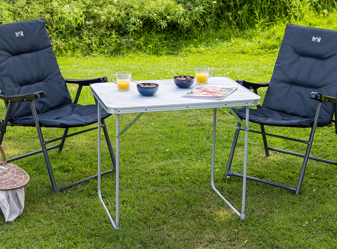 - Folding Camping Table is perfect for camping, caravanning, picnics, garden use, and more (measures L80cm x W60cm x H67cm to seat 2-4 people).
