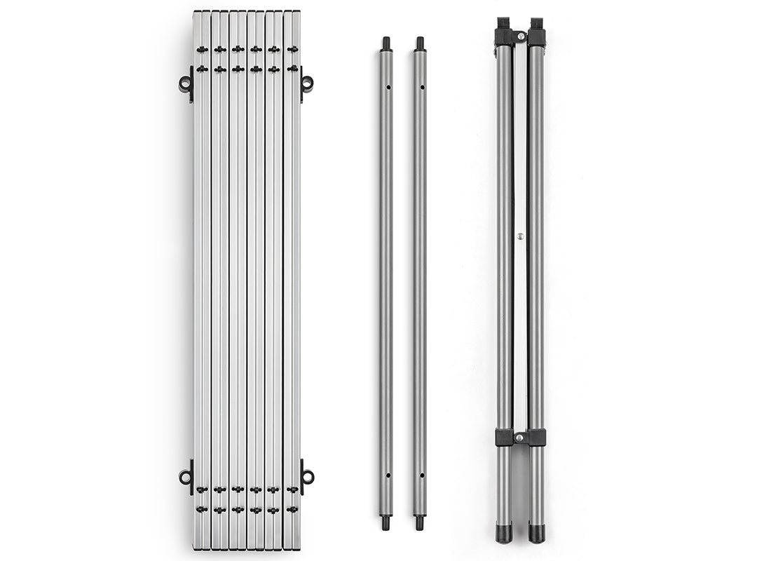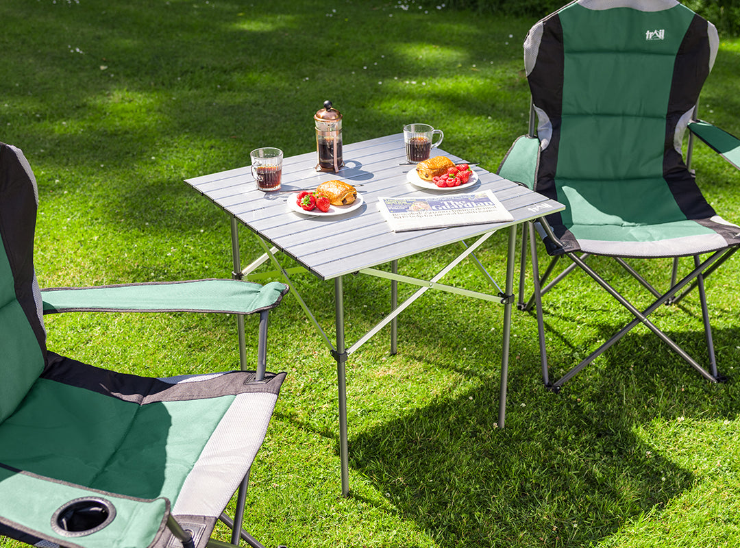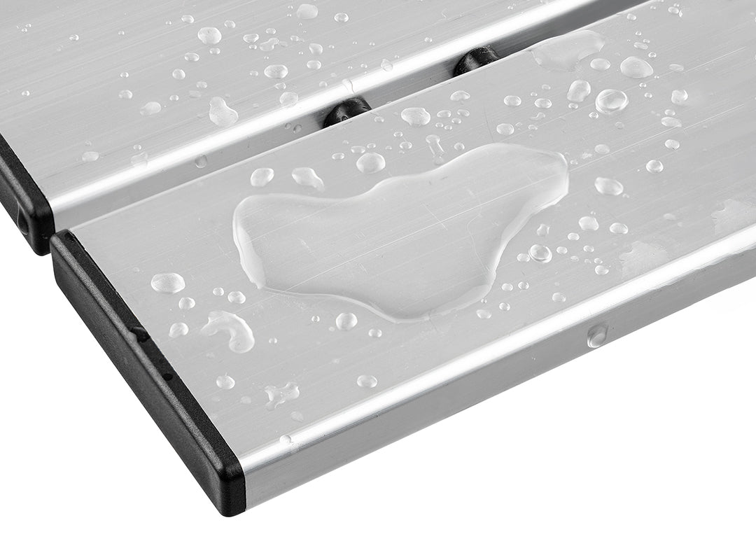 - Pre-connected slatted top made from strong, sturdy aluminium (ultra-lightweight, making the table easier to carry, plus waterproof and immune to rust).