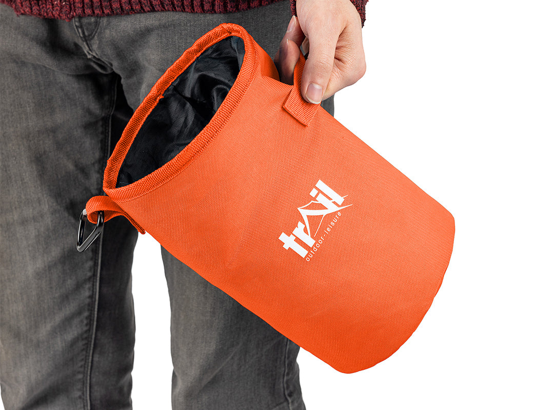 - Bag is brightly coloured to easily find in low light conditions and contains a carabiner clip to easily clip onto a belt or clothing.