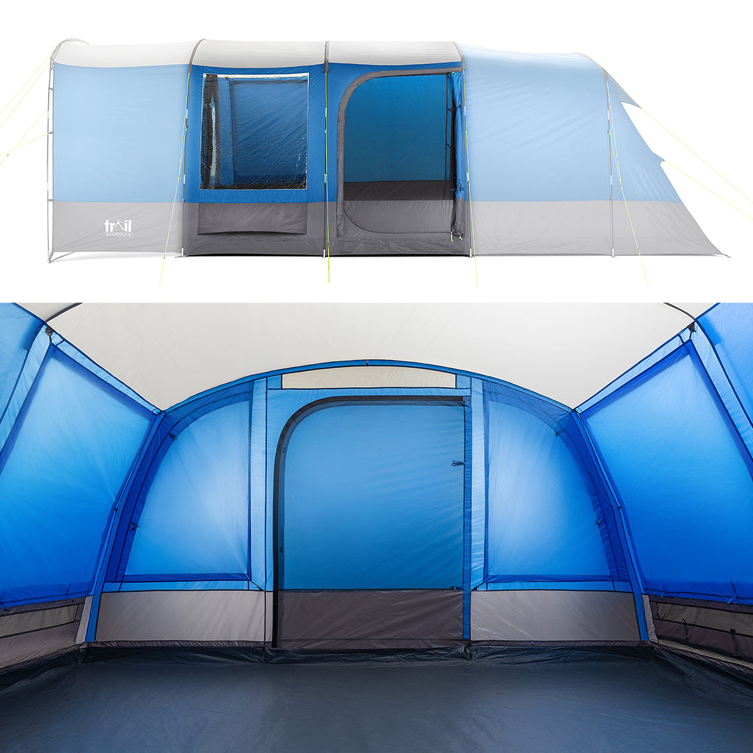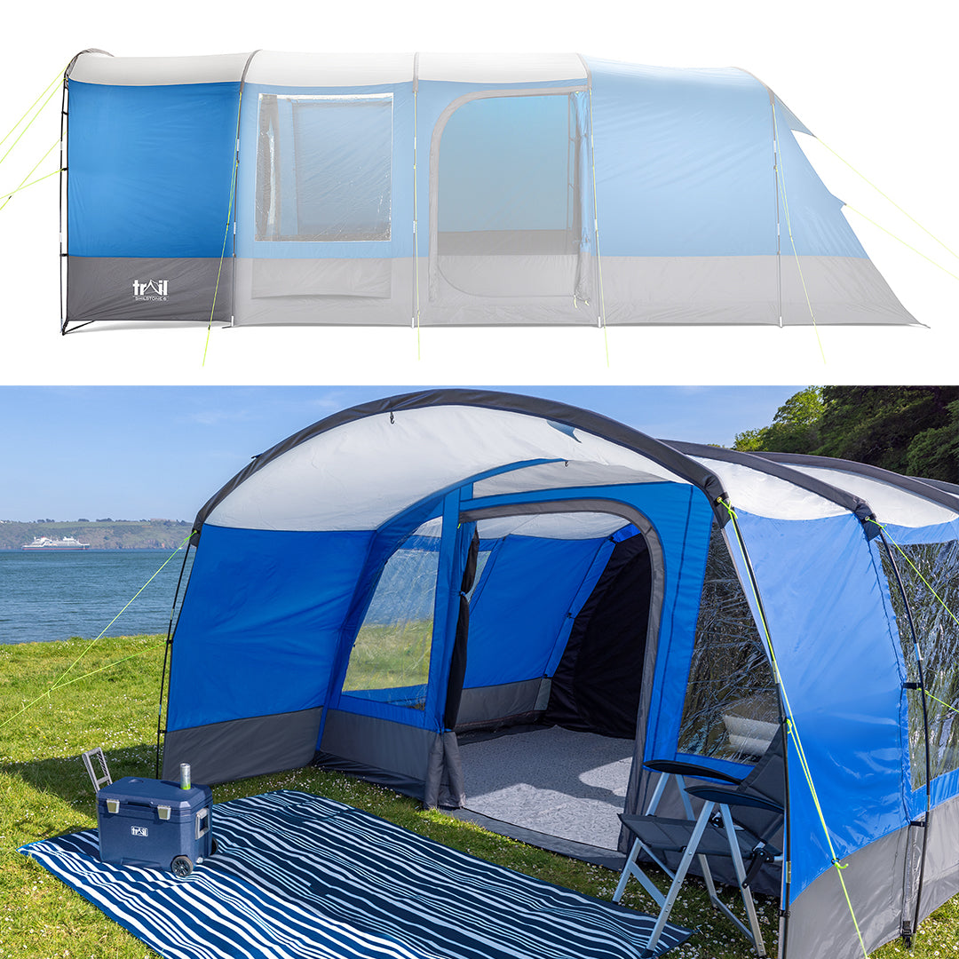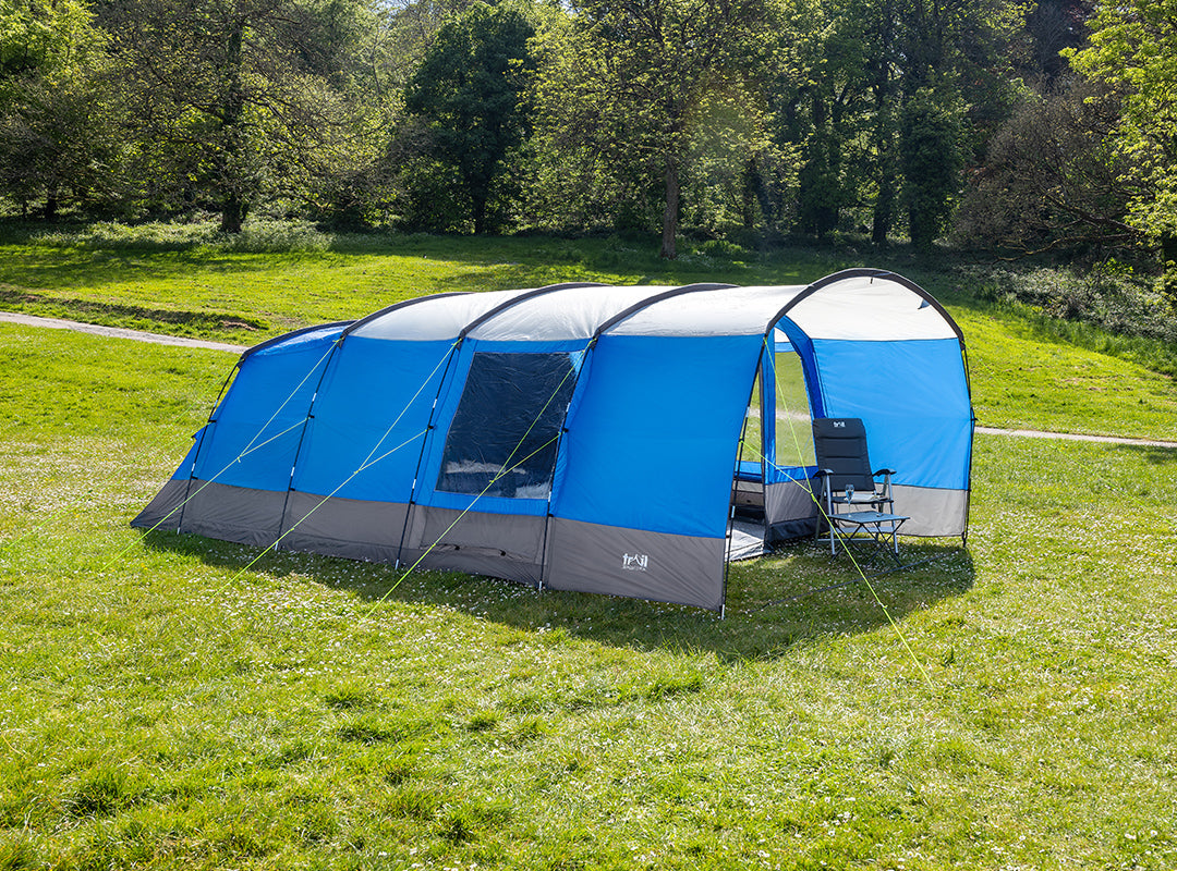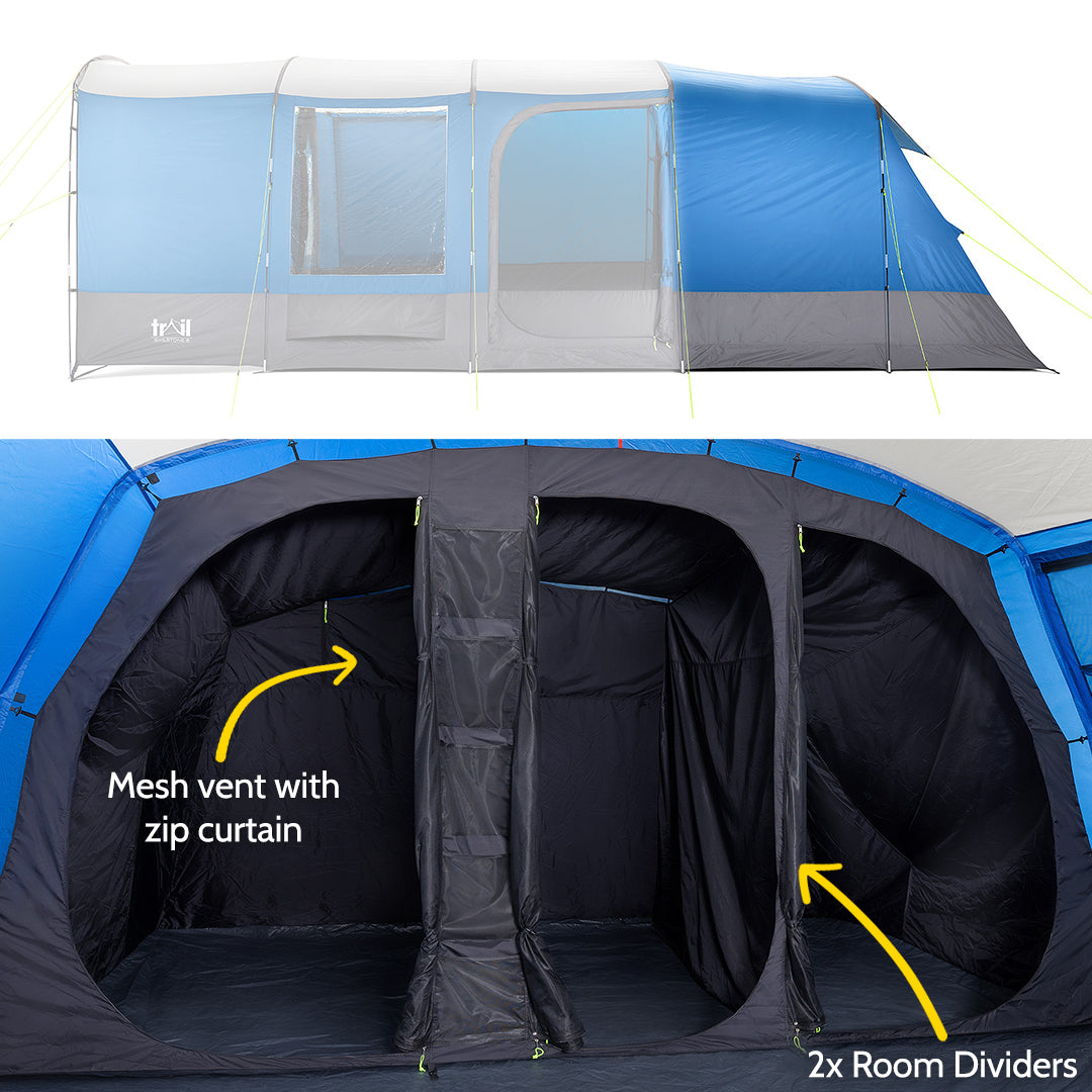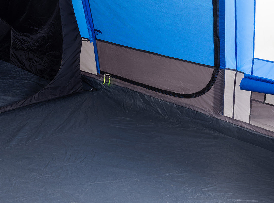 - Bedroom designed using Dark Zone fabric to significantly block out sunlight (contains a sewn-in groundsheet, vents with zip curtains, and toggled dividers to create 3 rooms).