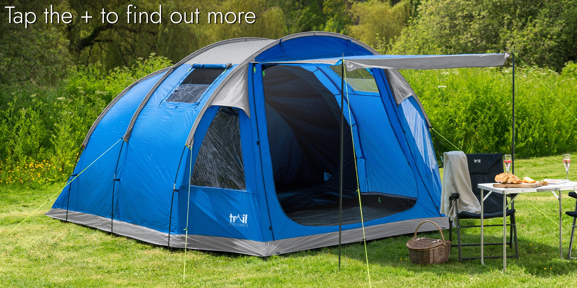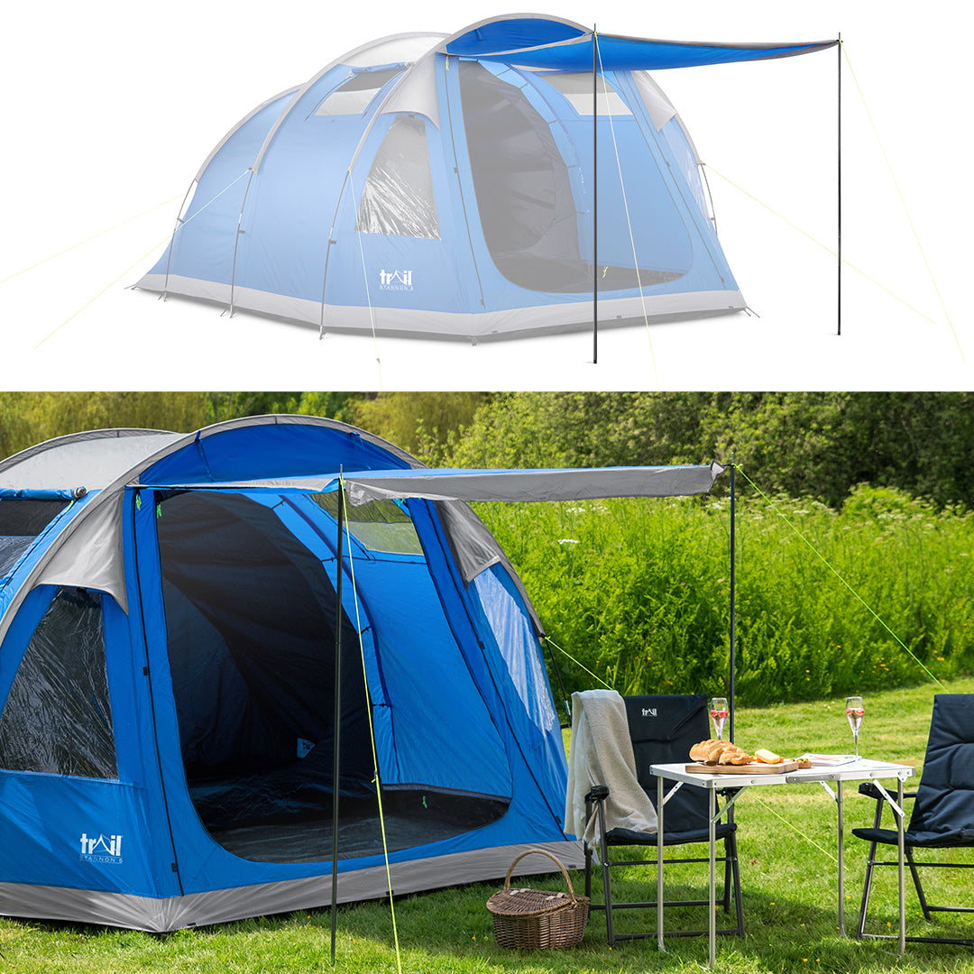 - Living area measures L235cm x W300cm x H205cm with sewn-in groundsheet, cable access, and windows (king poles included to turn entrance into a canopy).