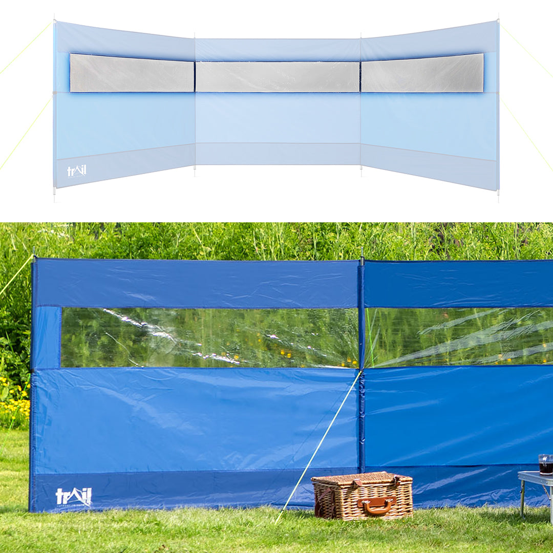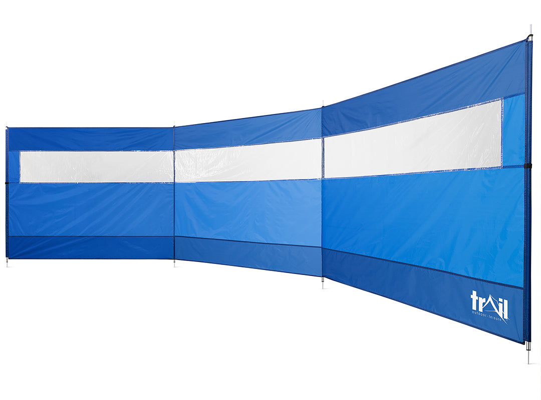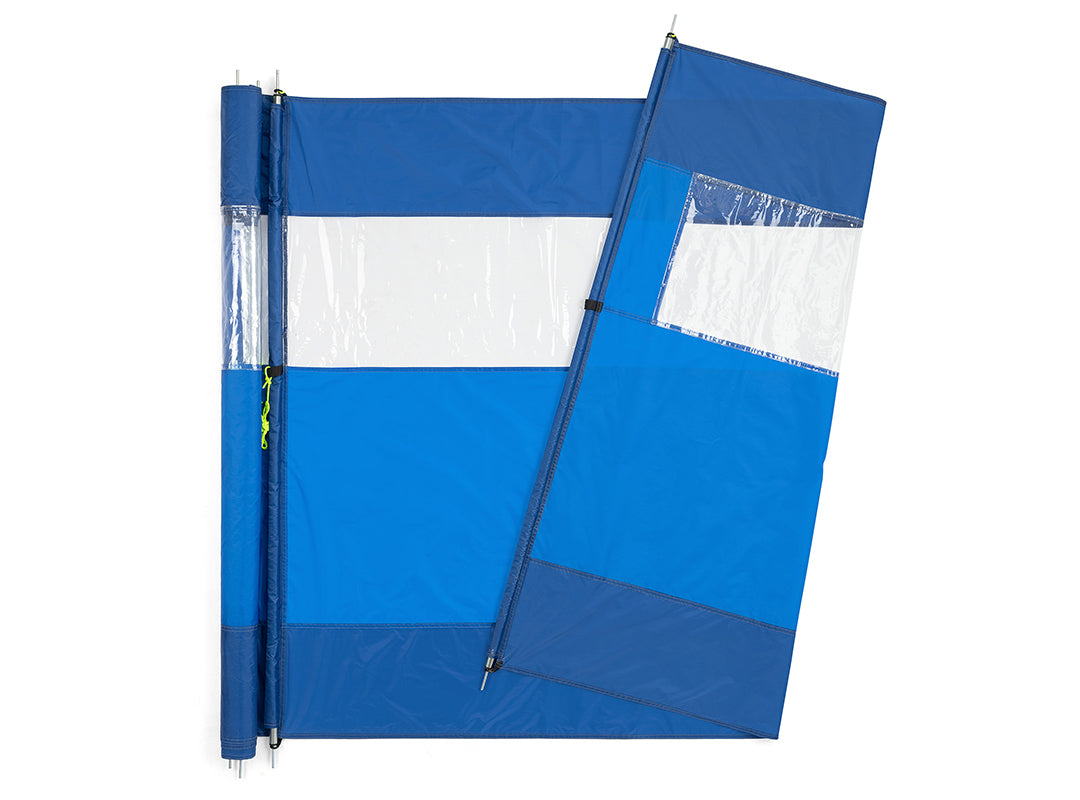 - Steel pole windbreak measures 500cm x 140cm (16ft x 4.5ft) with 4 poles and 3 panels.