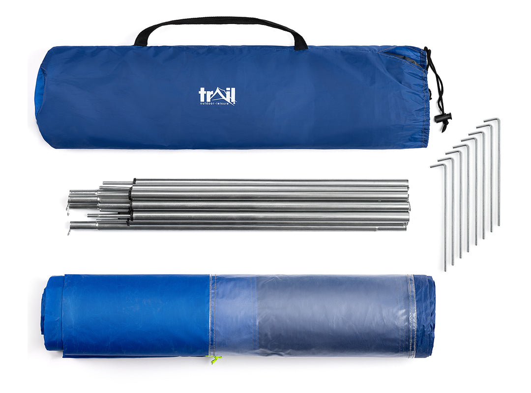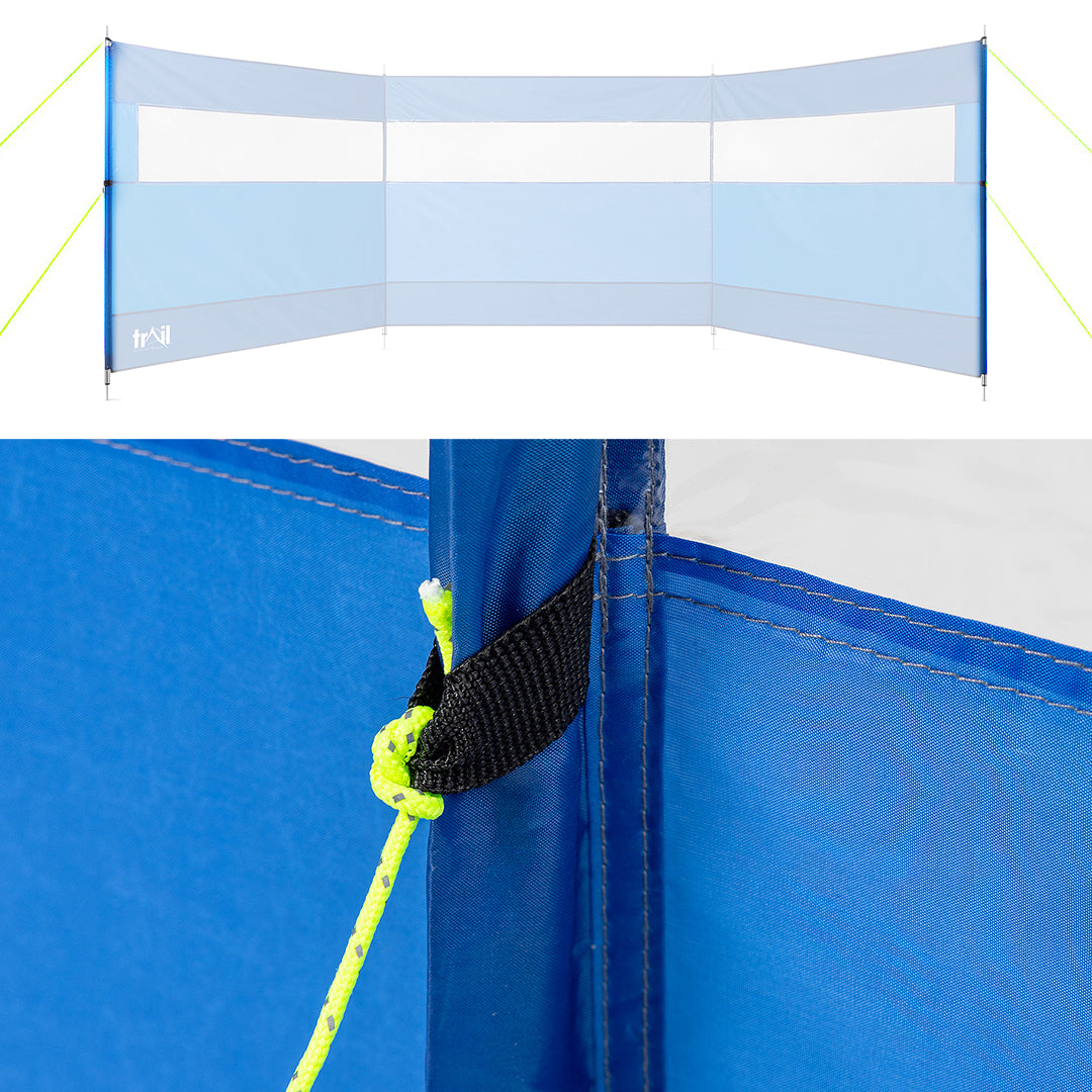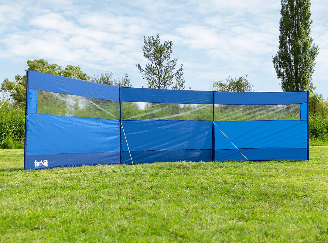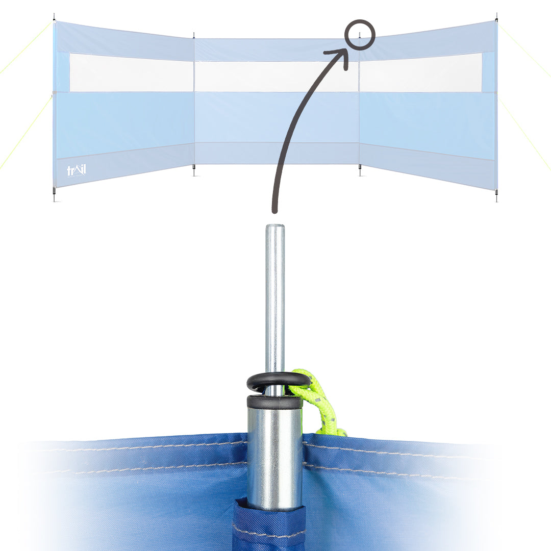 - Steel pole windbreak measures 500cm x 140cm (16ft x 4.5ft) with 4 poles and 3 panels.