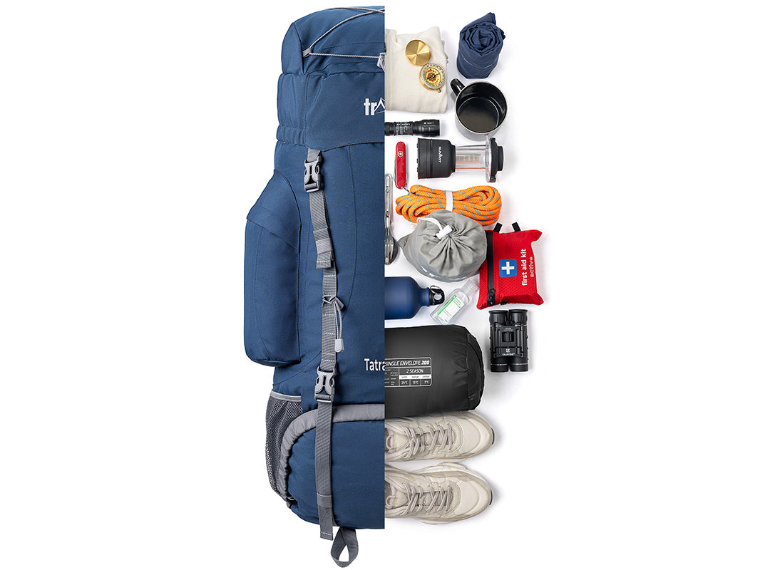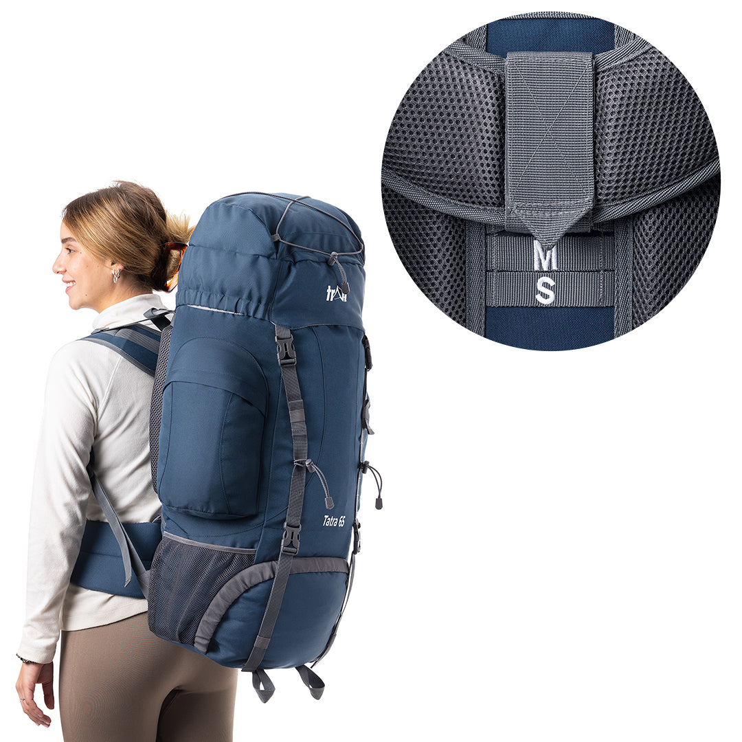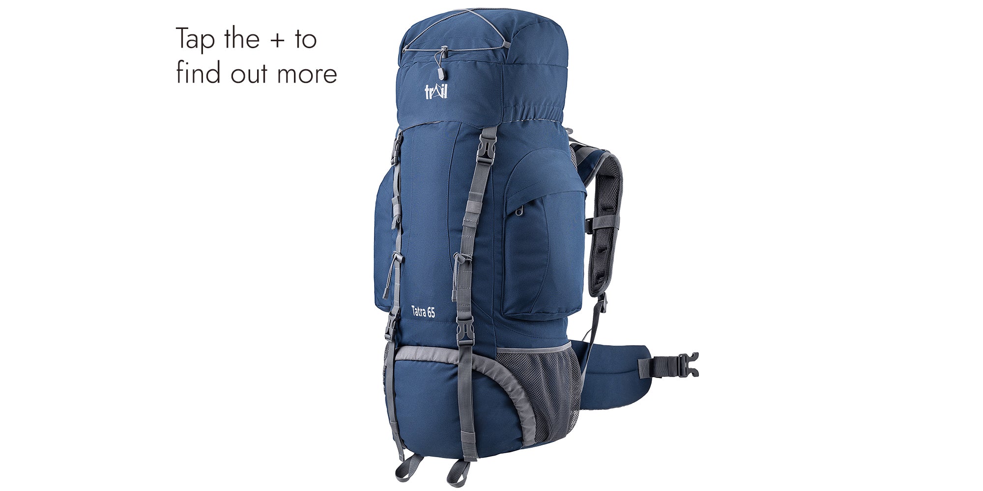 - Perfect for hiking, backpacking, and outdoor adventures. Boasts a 65 Litre capacity and 8 storage compartments to carry all your essentials. Measures H70cm x W30cm x D25cm.