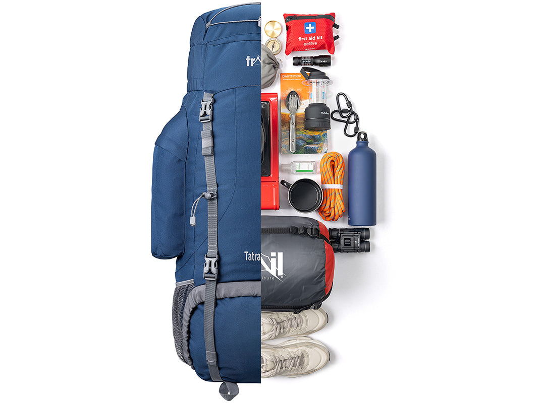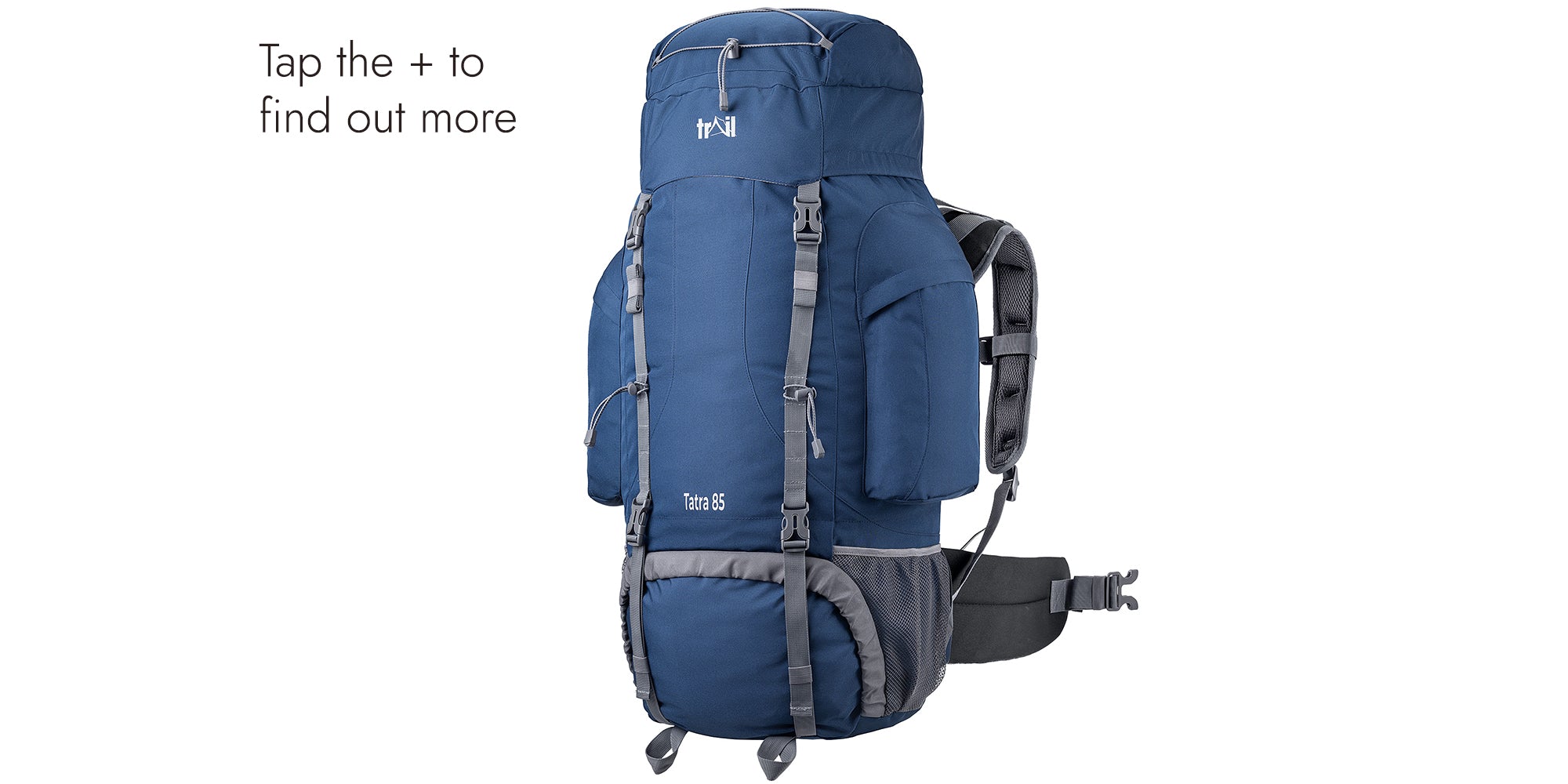 - Perfect for hiking, backpacking, and outdoor adventures. Boasts a 85 Litre capacity and 8 storage compartments to carry all your essentials. Measures H80cm x W35cm x D25cm.