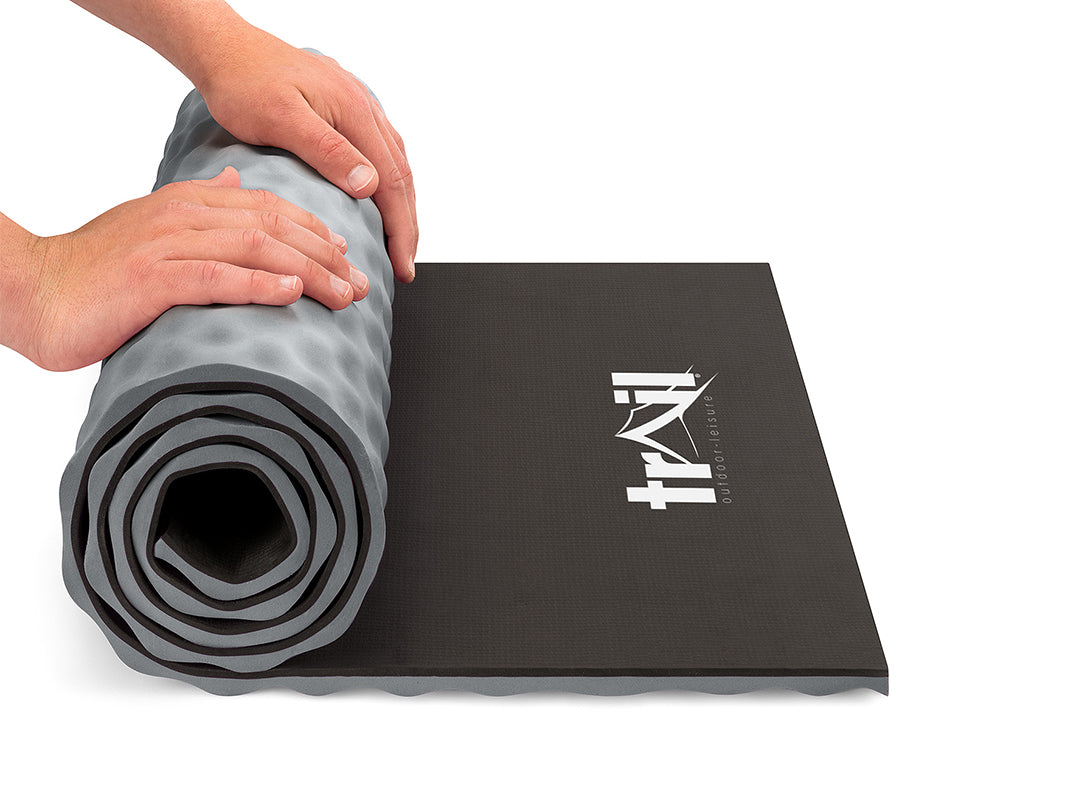 - Double-layered closed-cell EVA foam measures 15mm thick (provides excellent cushioning, comfort, and insulation from the cold, hard ground).