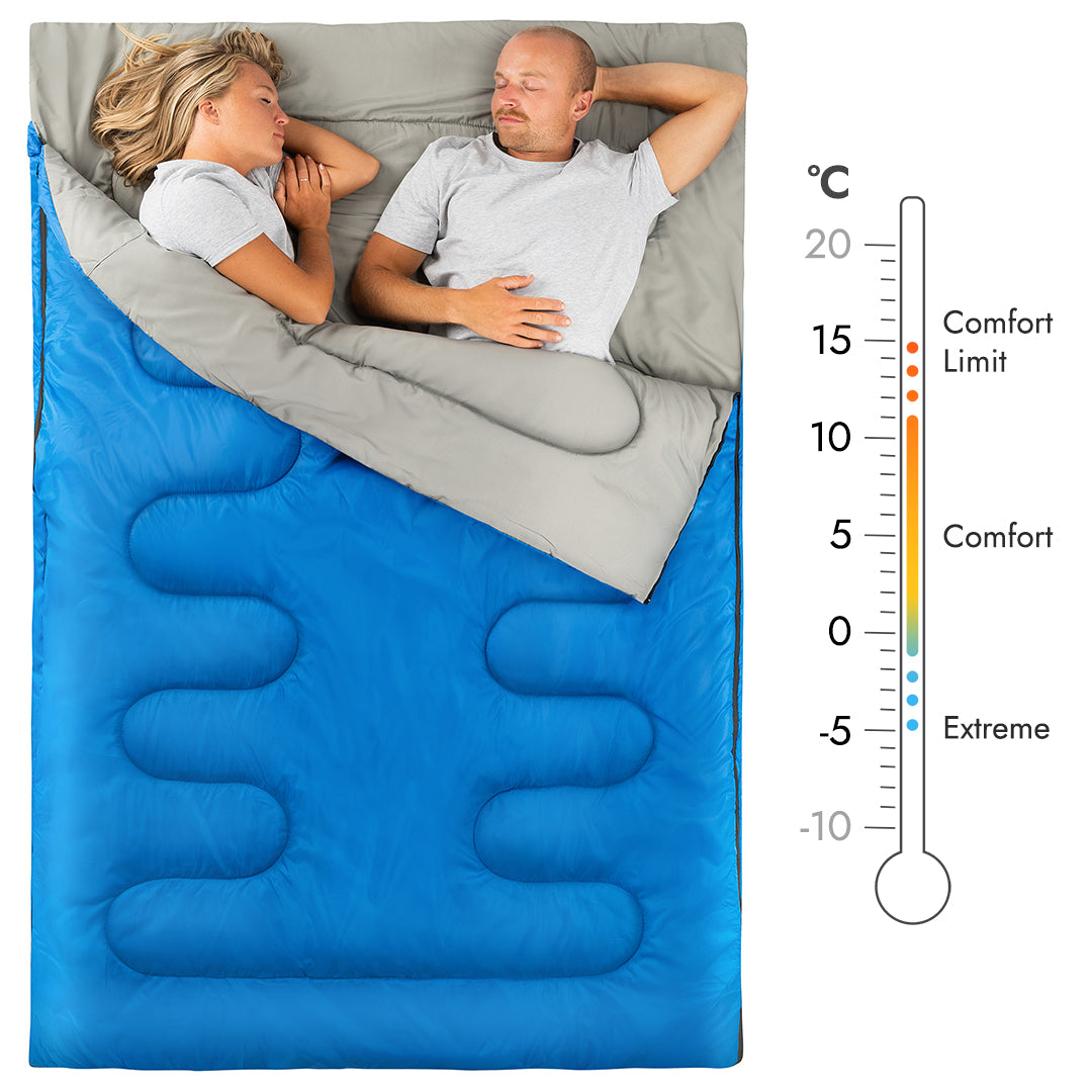 - Double sleeping bag is a perfect size for couples and can be easily converted into two single sleeping bags if needed (measures L221cm x W150cm).