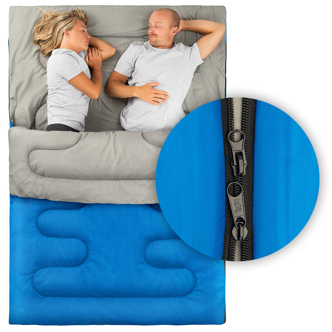- Extra-tough 2-way zip to easily open, regulate the temperature, or convert into two singles (plus, a Velcro closure to stop zips coming loose while sleeping).